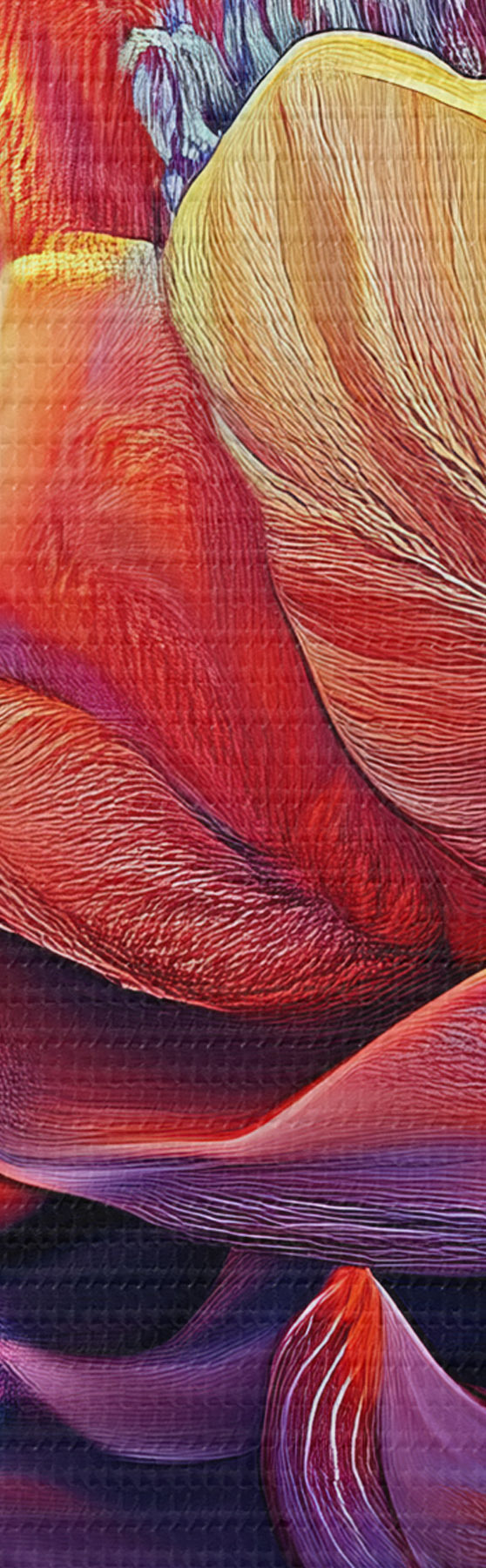 Drobny splot nici na tym płótnie przypomina powierzchnię profesjonalnych płócien artystycznych.