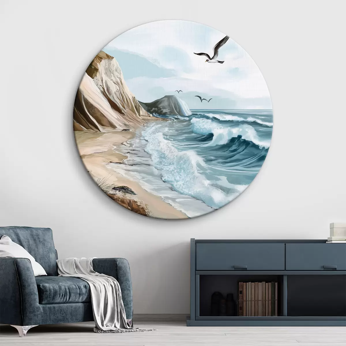 Okrągły obraz Piaszczysta plaża i ptaki Nr r44222