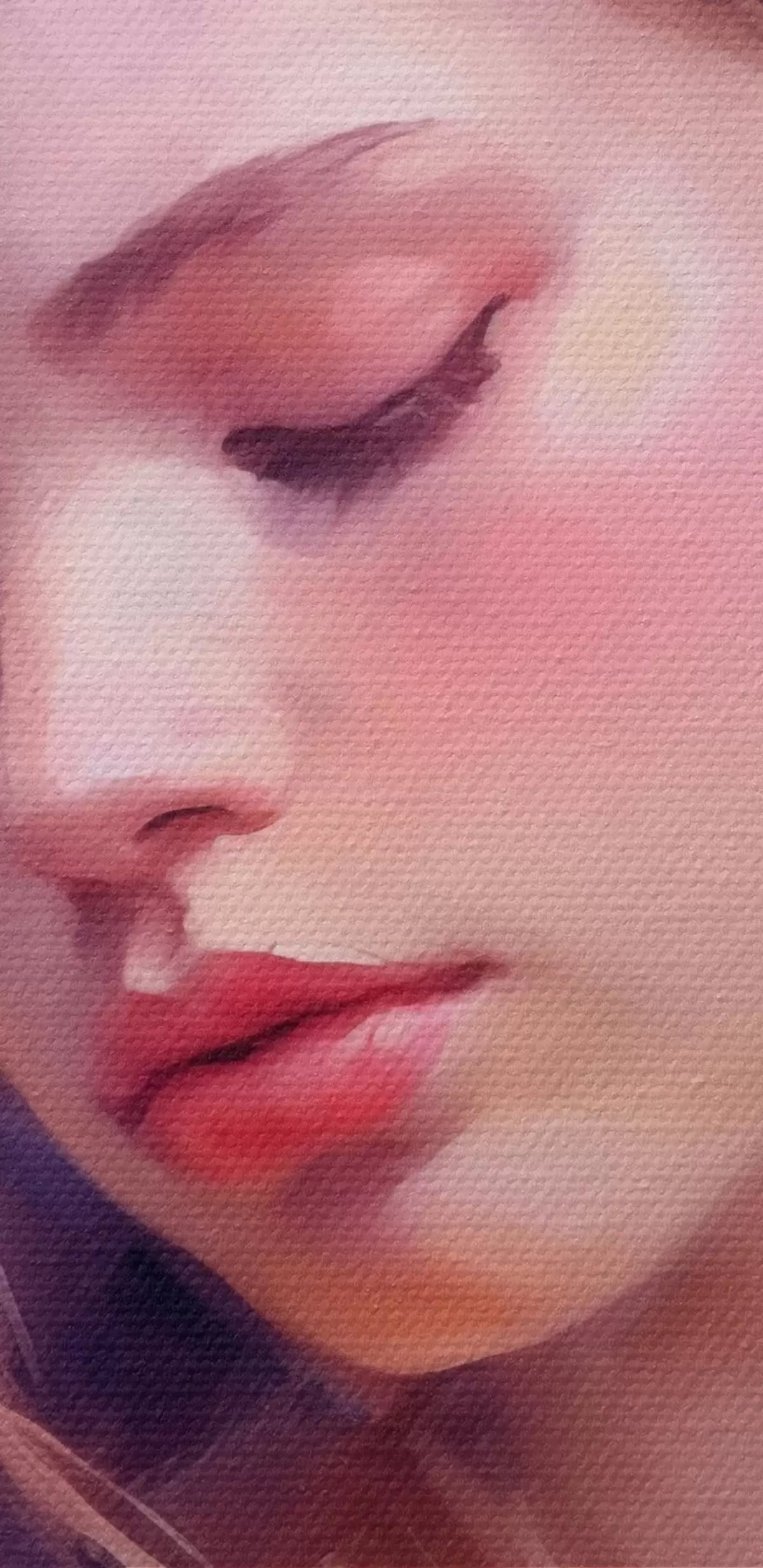 Drobny splot nici na tym płótnie przypomina powierzchnię profesjonalnych płócien artystycznych.