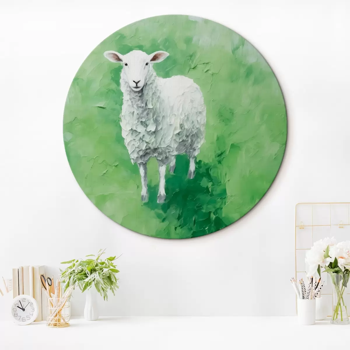 Okrągły obraz Owce na polu Nr r44284