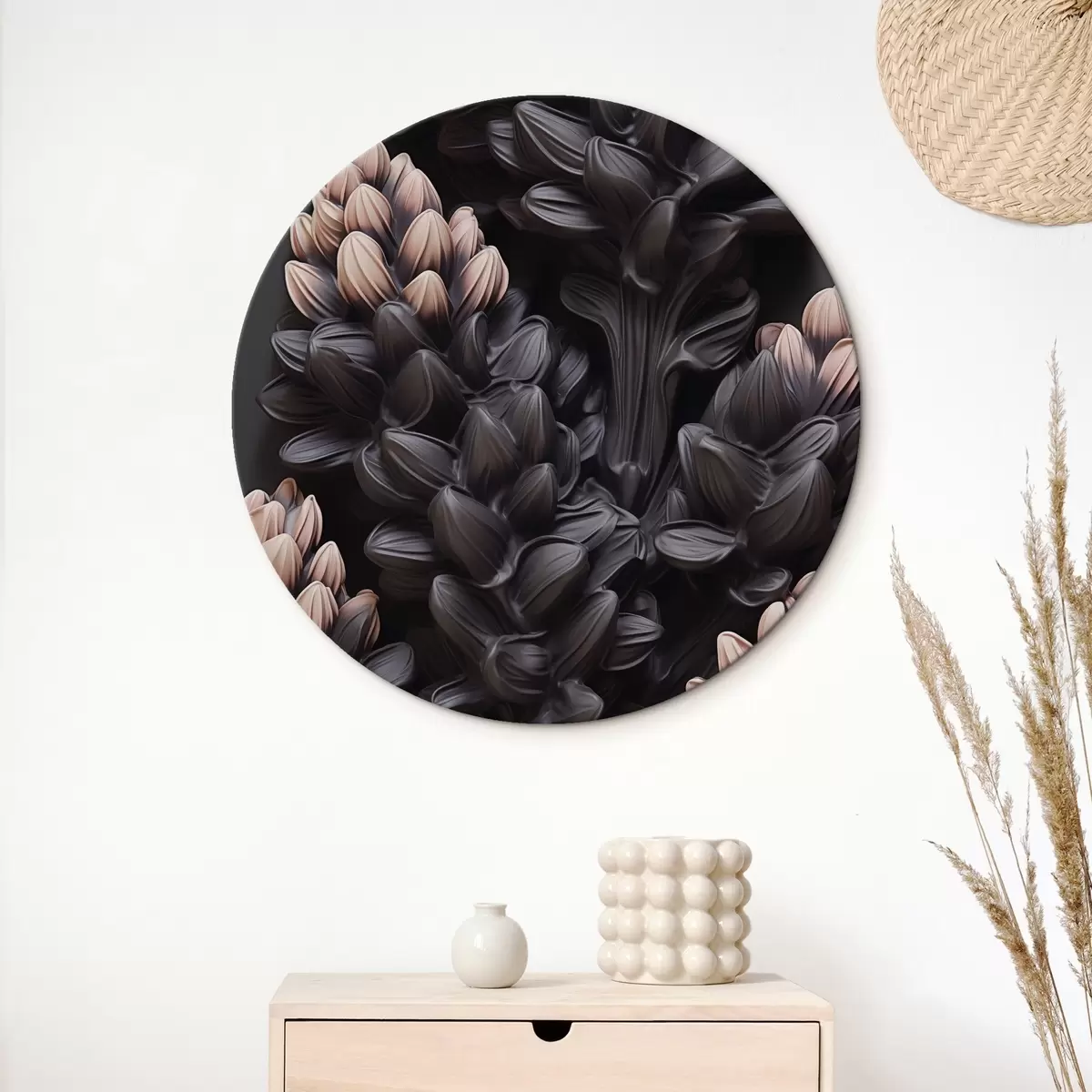 Okrągły obraz Ciemne kwiaty Nr r44296