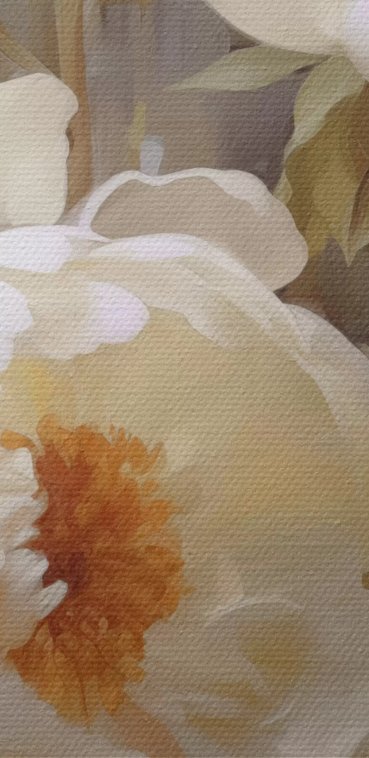 Drobny splot nici na tym płótnie przypomina powierzchnię profesjonalnych płócien artystycznych.
