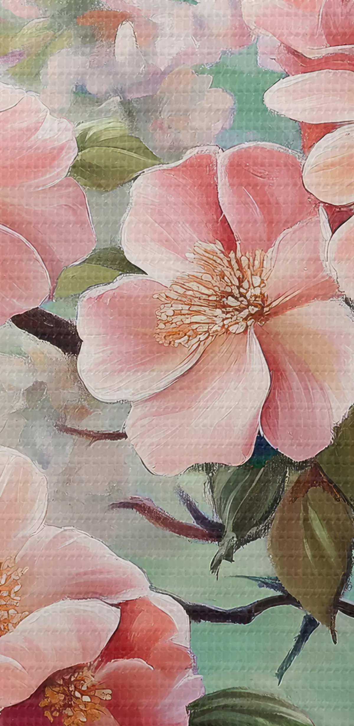 Drobny splot nici na tym płótnie przypomina powierzchnię profesjonalnych płócien artystycznych.