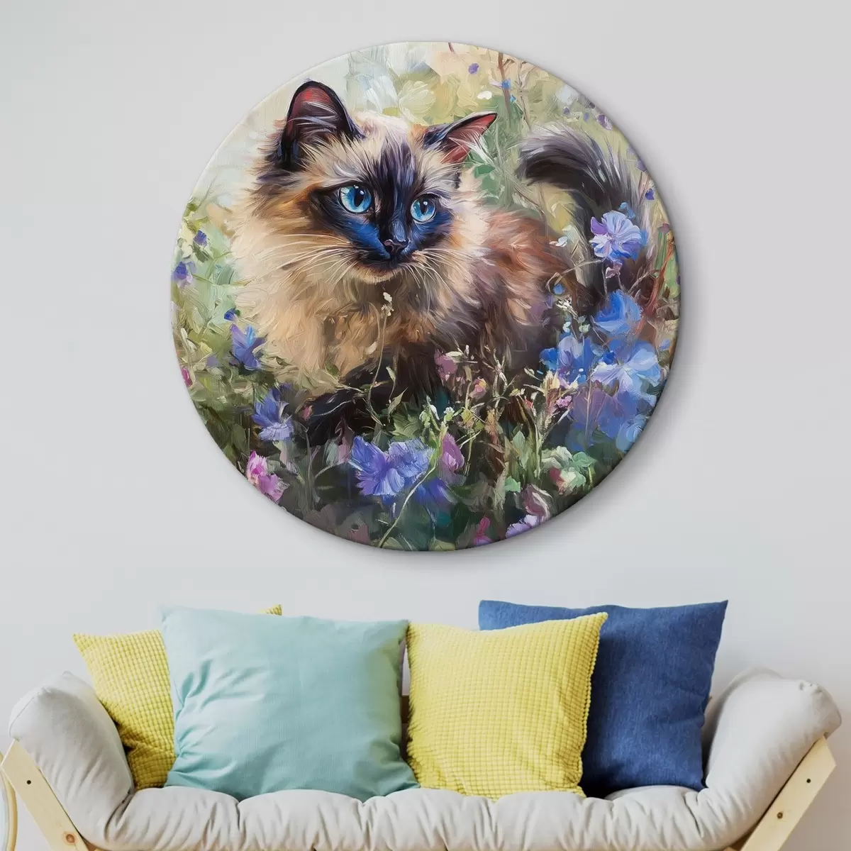 Okrągły obraz Kotek w kwiatki Nr r44331