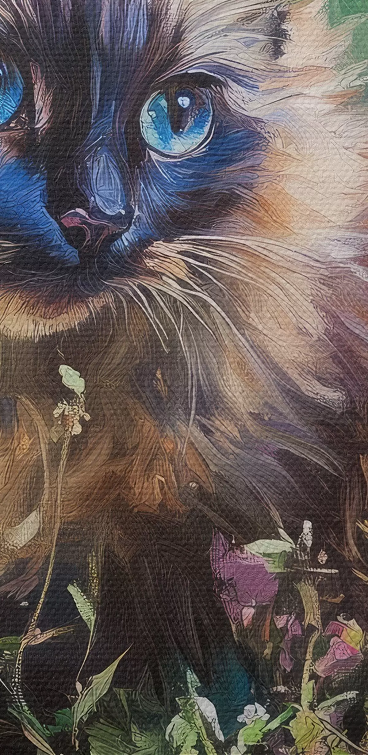 Do zamówienia dostępne są trzy rodzaje materiału: Economic Canvas - gęsty i trwały materiał do druku cyfrowego, identyczny z płótnem malarskim, wodoodporna powierzchnia, realistyczne odwzorowanie szczegółów, materiał średnioziarnisty. Premium Canvas - tekstura przypominająca płótno malarskie (przeplatane drobne nitki). Miękka, szczegółowa reprodukcja obrazu na matowej powierzchni. Eco-Premium - wysokiej jakości tkanina w 100% bawełniana. Dzięki naturalnym włóknom bawełnianym materiał jest trwały i odporny na zużycie. Doskonałe odwzorowanie kolorów i szczegółów.