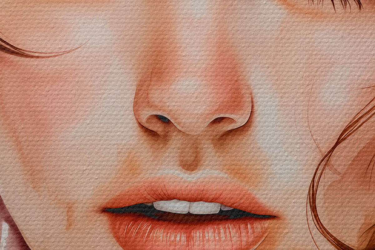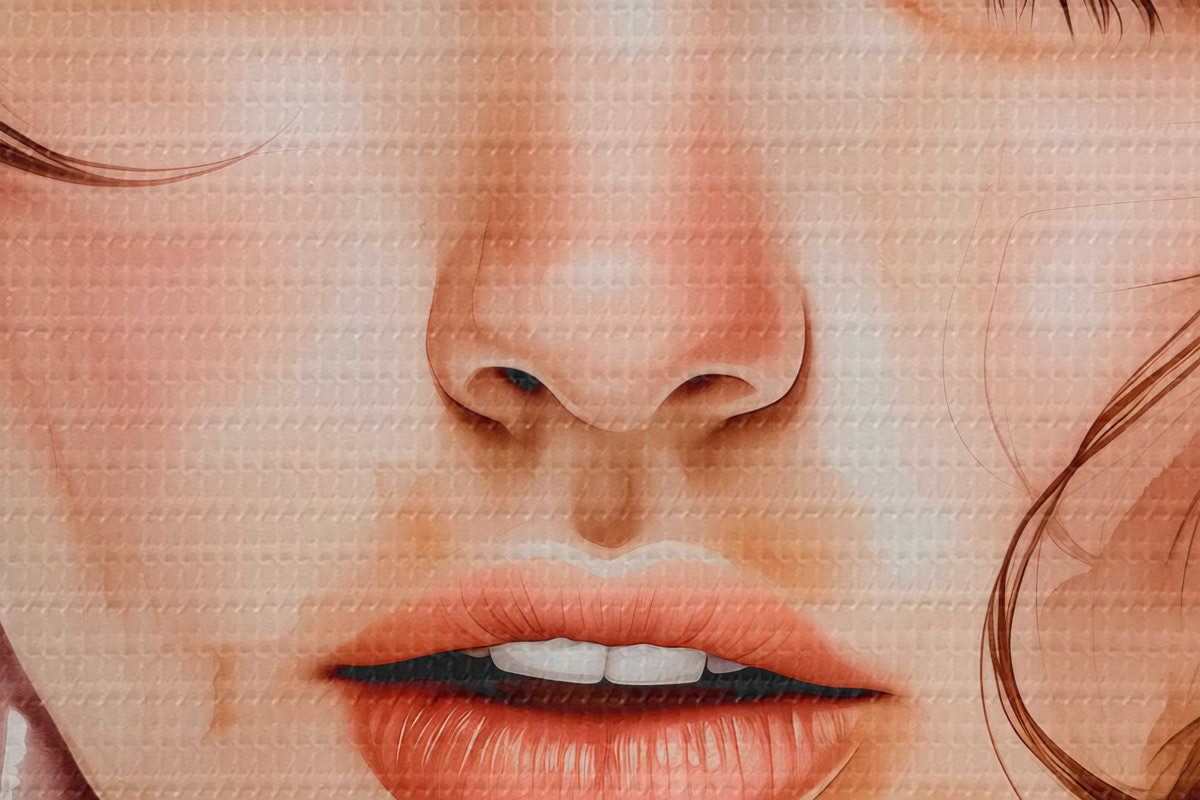 Drobny splot nici na tym płótnie przypomina powierzchnię profesjonalnych płócien artystycznych.