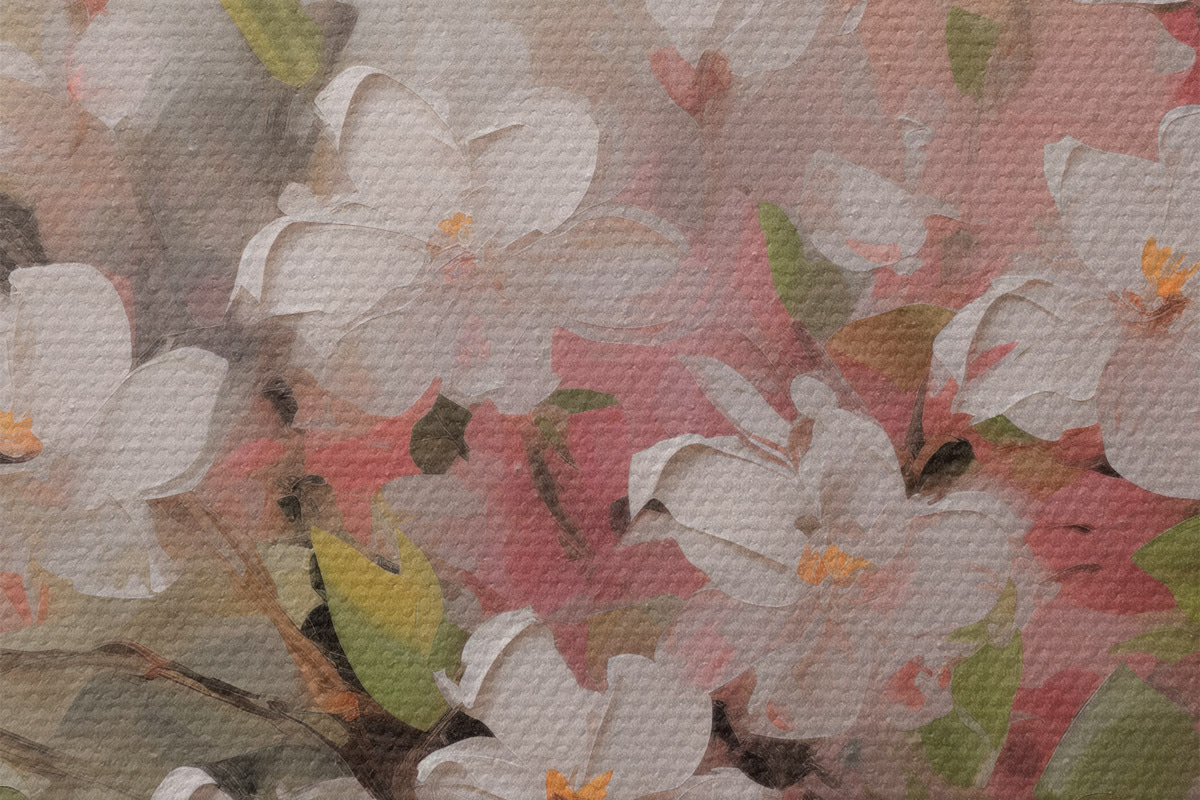 Drobny splot nici na tym płótnie przypomina powierzchnię profesjonalnych płócien artystycznych.
