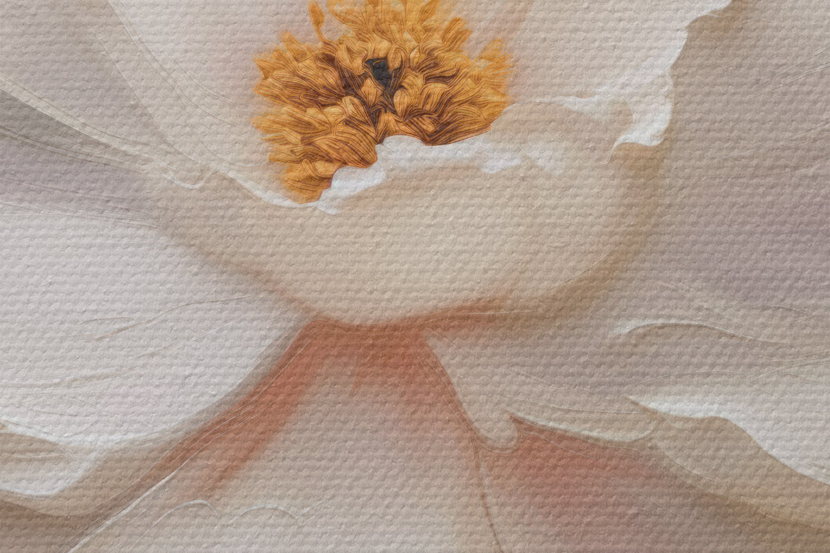 Drobny splot nici na tym płótnie przypomina powierzchnię profesjonalnych płócien artystycznych.