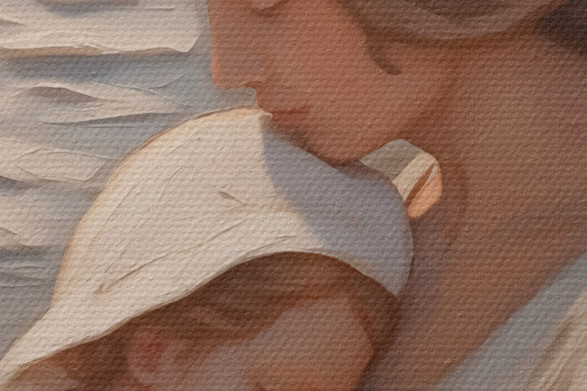 Do zamówienia dostępne są trzy rodzaje materiału: Economic Canvas - gęsty i trwały materiał do druku cyfrowego, identyczny z płótnem malarskim, wodoodporna powierzchnia, realistyczne odwzorowanie szczegółów, materiał średnioziarnisty. Premium Canvas - tekstura przypominająca płótno malarskie (przeplatane drobne nitki). Miękka, szczegółowa reprodukcja obrazu na matowej powierzchni. Eco-Premium - wysokiej jakości tkanina w 100% bawełniana. Dzięki naturalnym włóknom bawełnianym materiał jest trwały i odporny na zużycie. Doskonałe odwzorowanie kolorów i szczegółów.