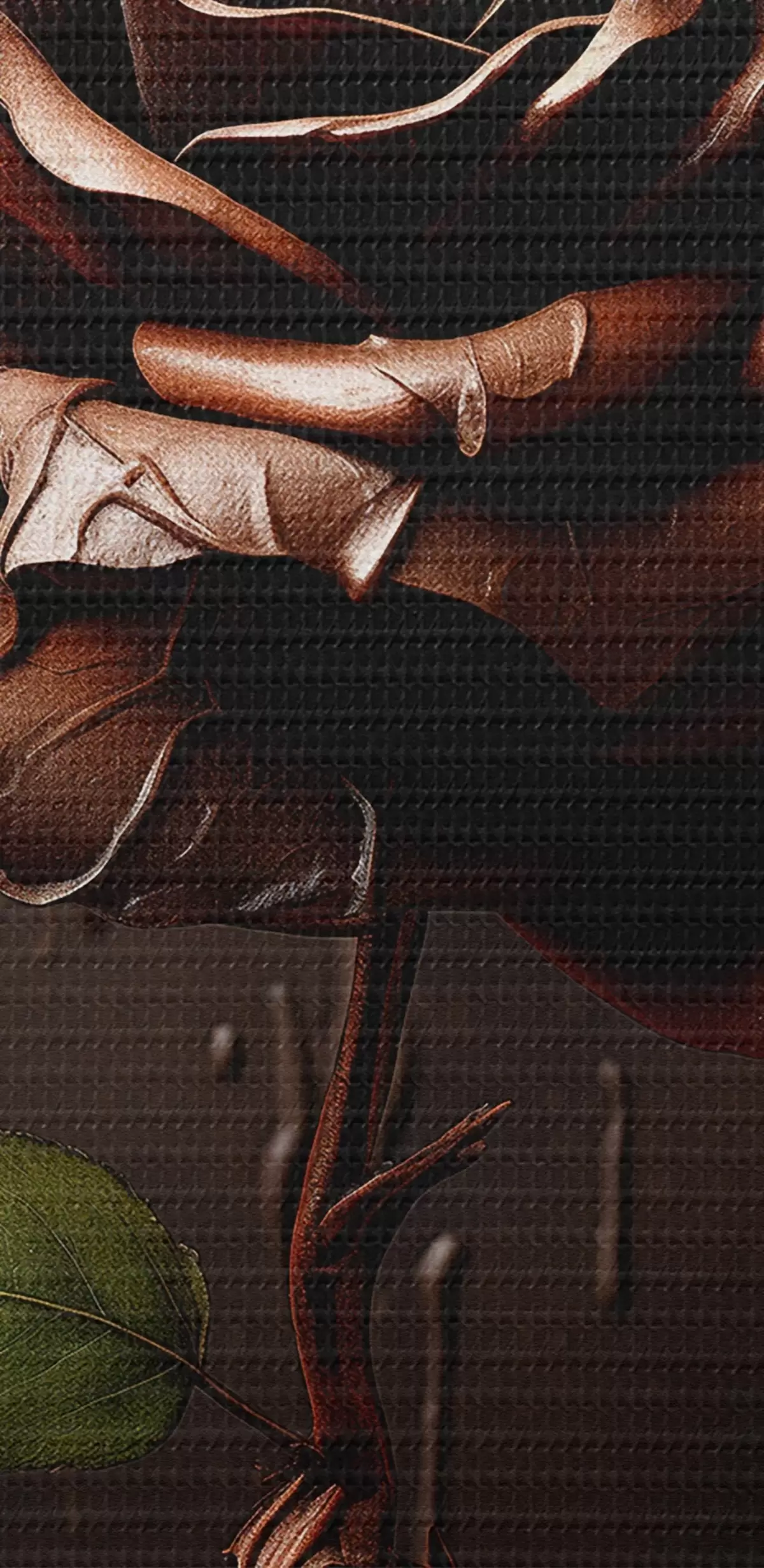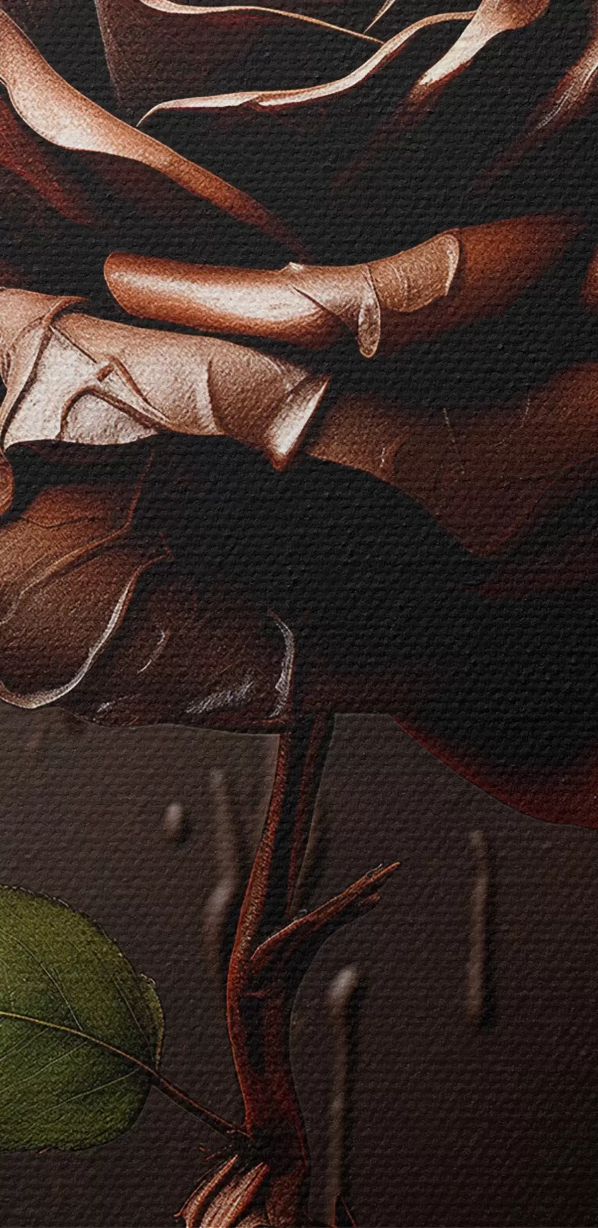 Okrągły obraz Brązowa róża na ciemnym tle z czekoladowymi plamami Nr r44381