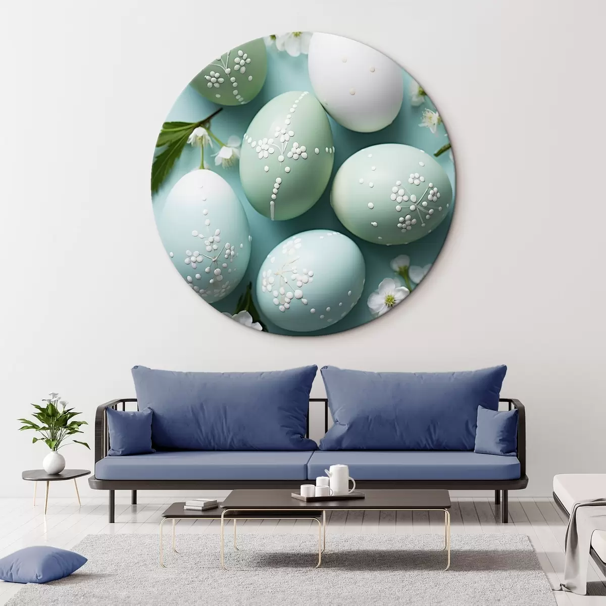 Okrągłe obrazy Królik z kwiatami na delikatnym beżowym tle w stylu akwareli r44386