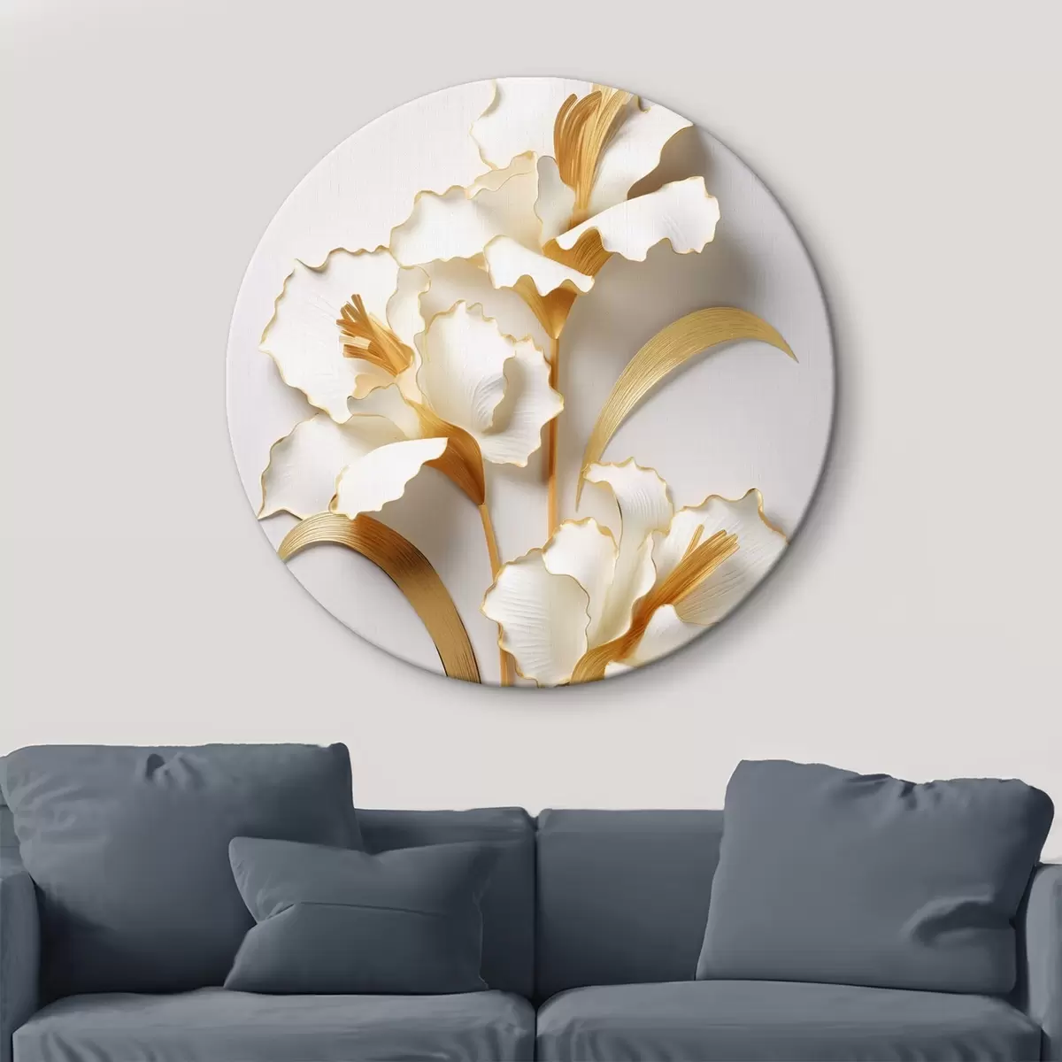 Okrągły obraz Bukiet wspaniałych kwiatów na jasnym tle Nr r44389