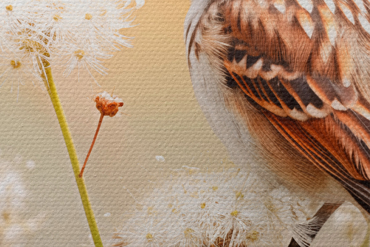 Drobny splot nici na tym płótnie przypomina powierzchnię profesjonalnych płócien artystycznych.