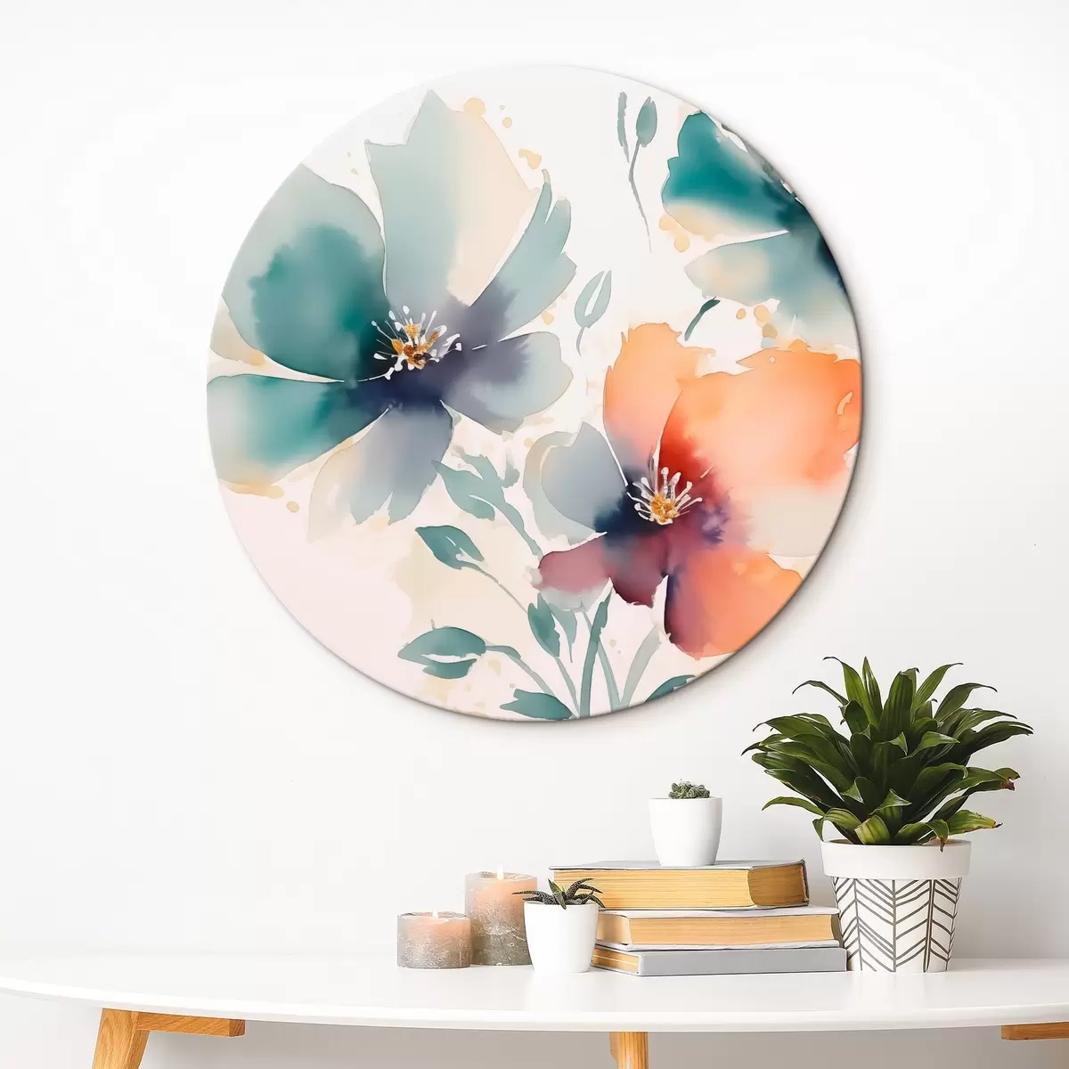 Okrągły obraz Kwiaty imitujące akwarelę Nr r44424