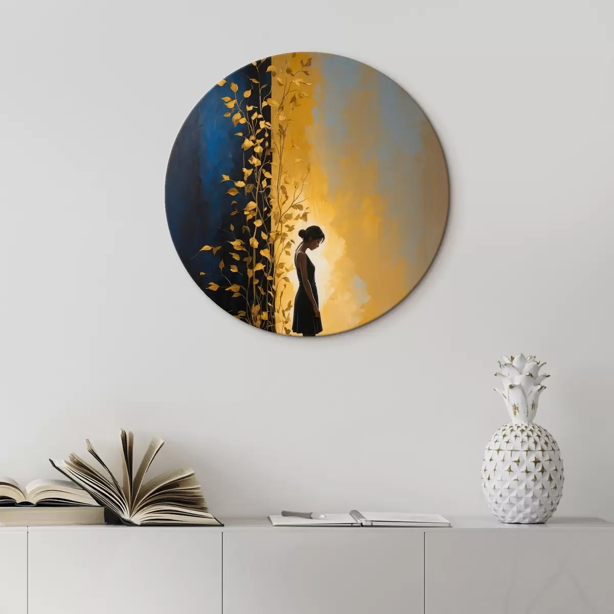 Okrągły obraz Dziewczyna na abstrakcyjnym tle Nr r44430
