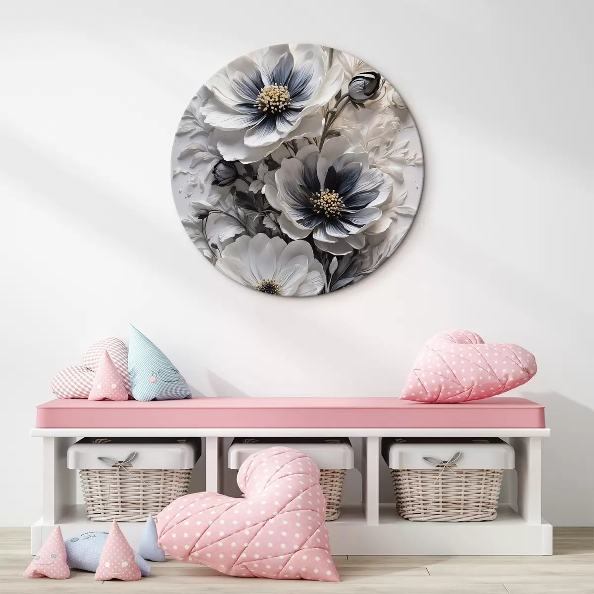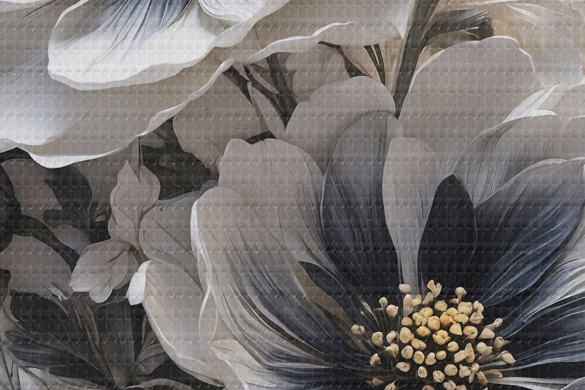 Okrągły obraz Czarno-białe kwiaty na białym tle Nr r44446