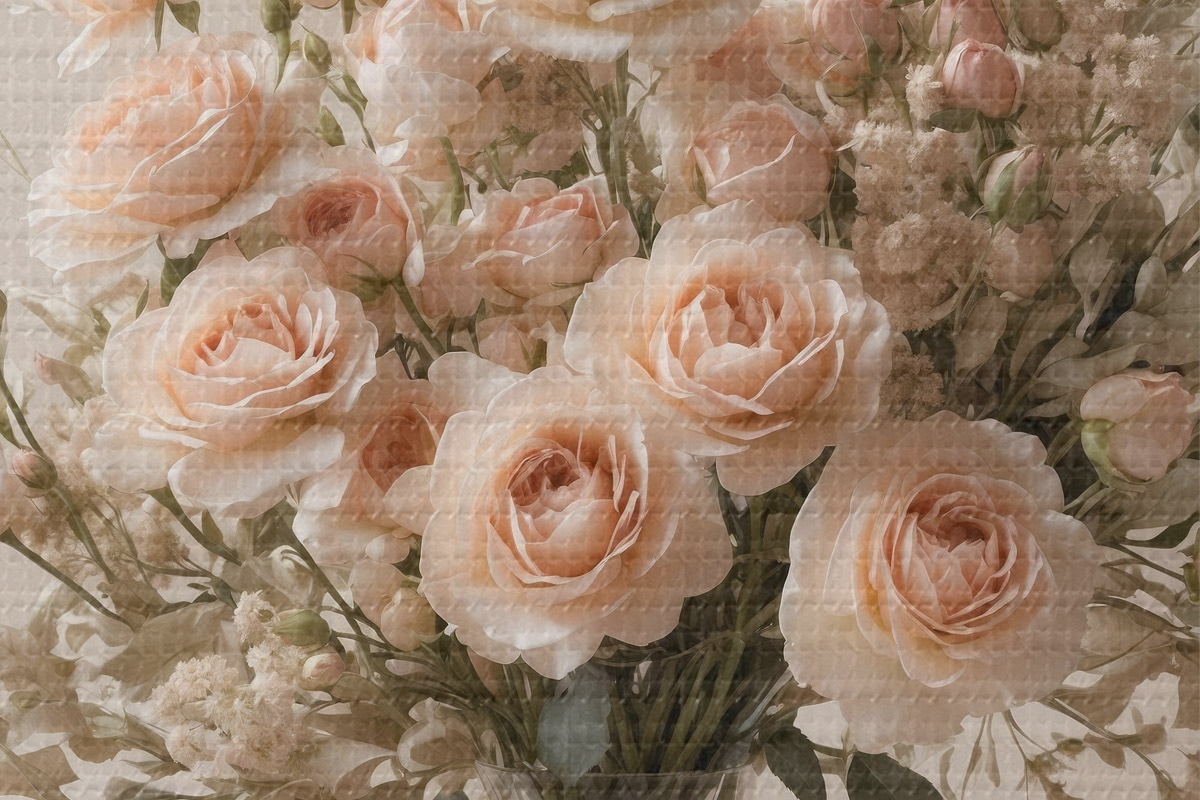 Drobny splot nici na tym płótnie przypomina powierzchnię profesjonalnych płócien artystycznych.