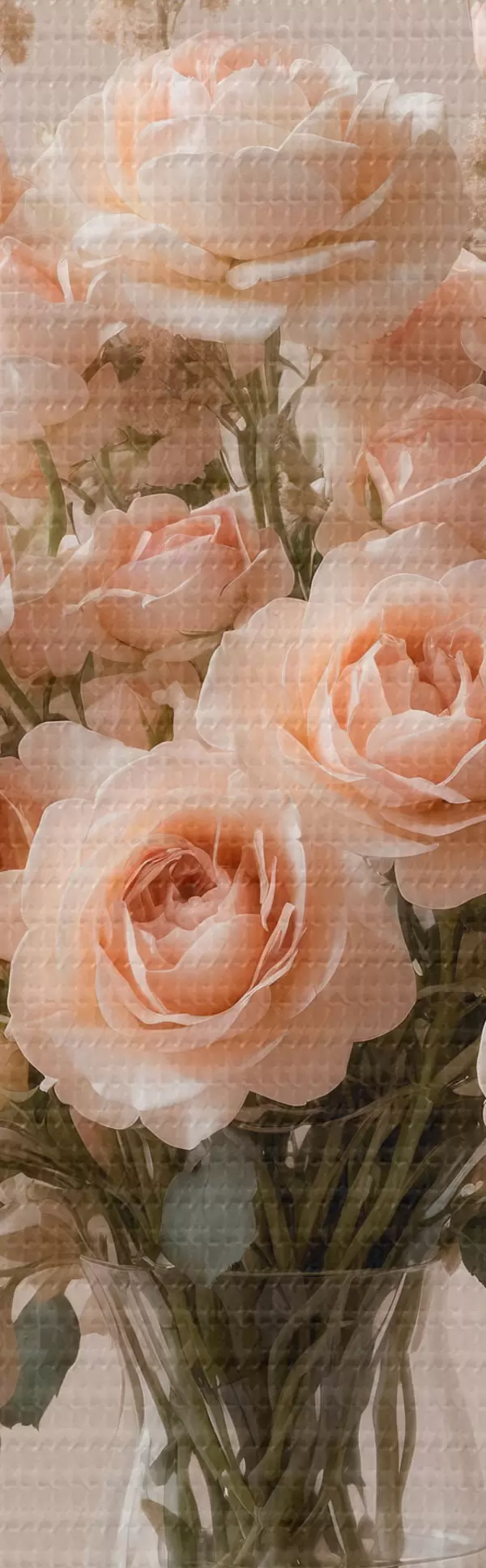 Okrągły obraz Białe róże w przezroczystym wazonie Nr r44451
