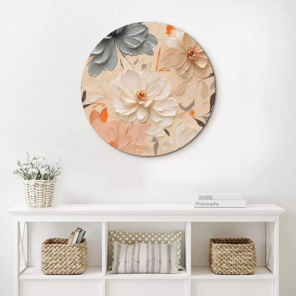Okrągły obraz Różne kwiaty w stylu malarstwa olejnego Nr r44455