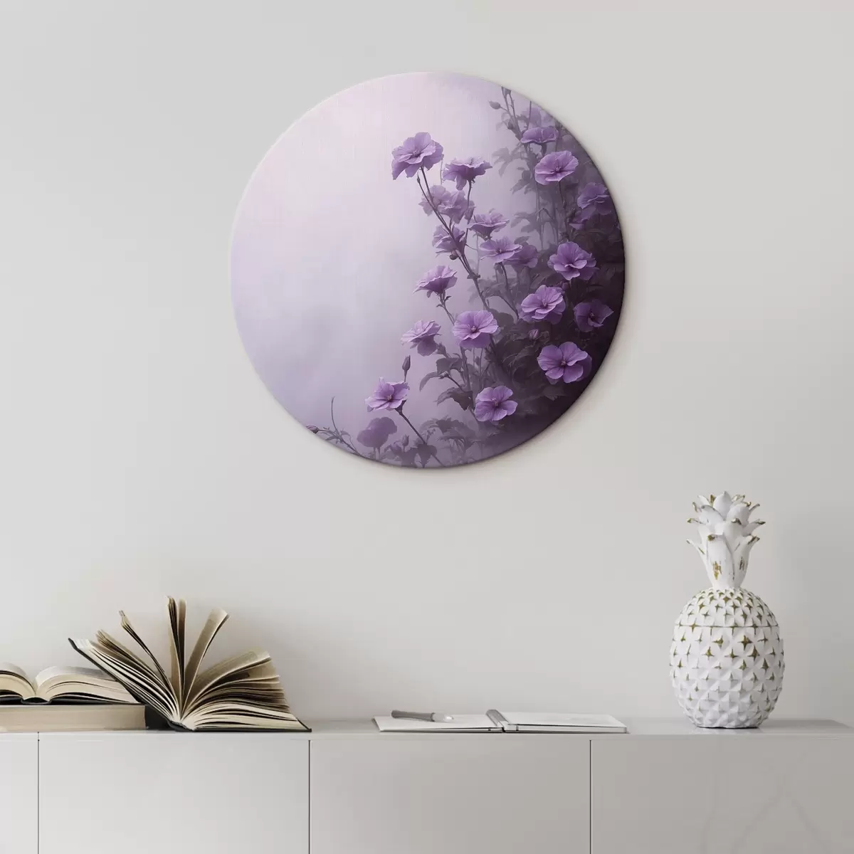 Okrągły obraz Fioletowe kwiaty we mgle Nr r44456