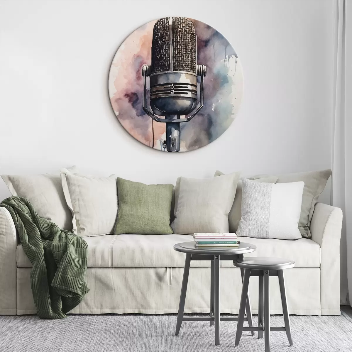 Okrągły obraz Mikrofon na akwarelowym tle Nr r44463