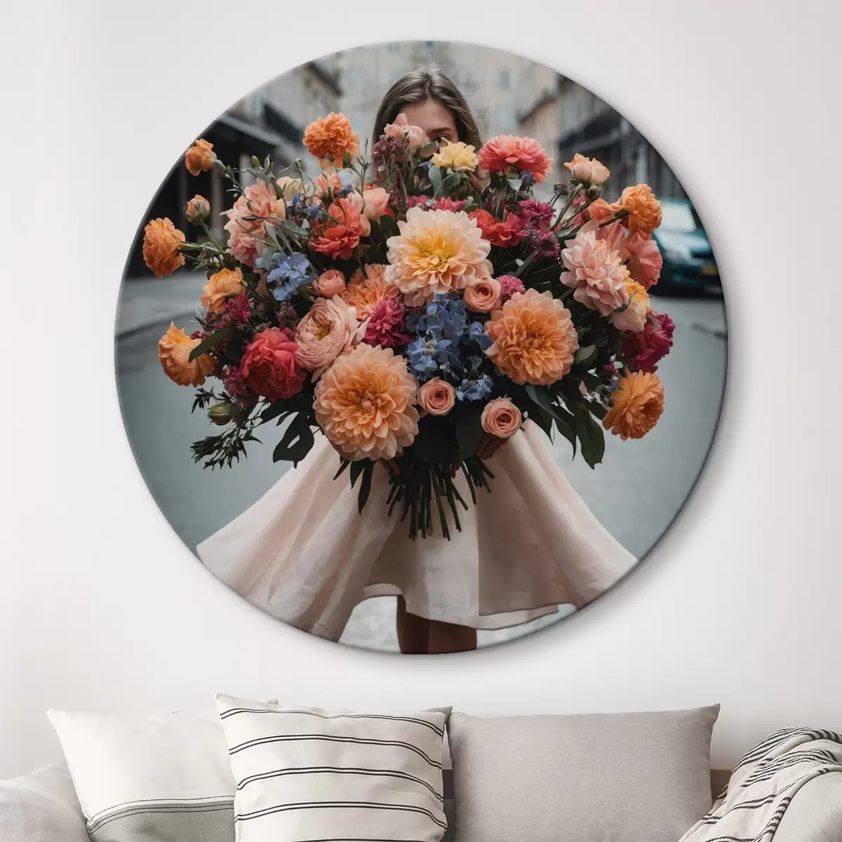 Okrągły obraz Dziewczyna z kwiatami Nr r44474