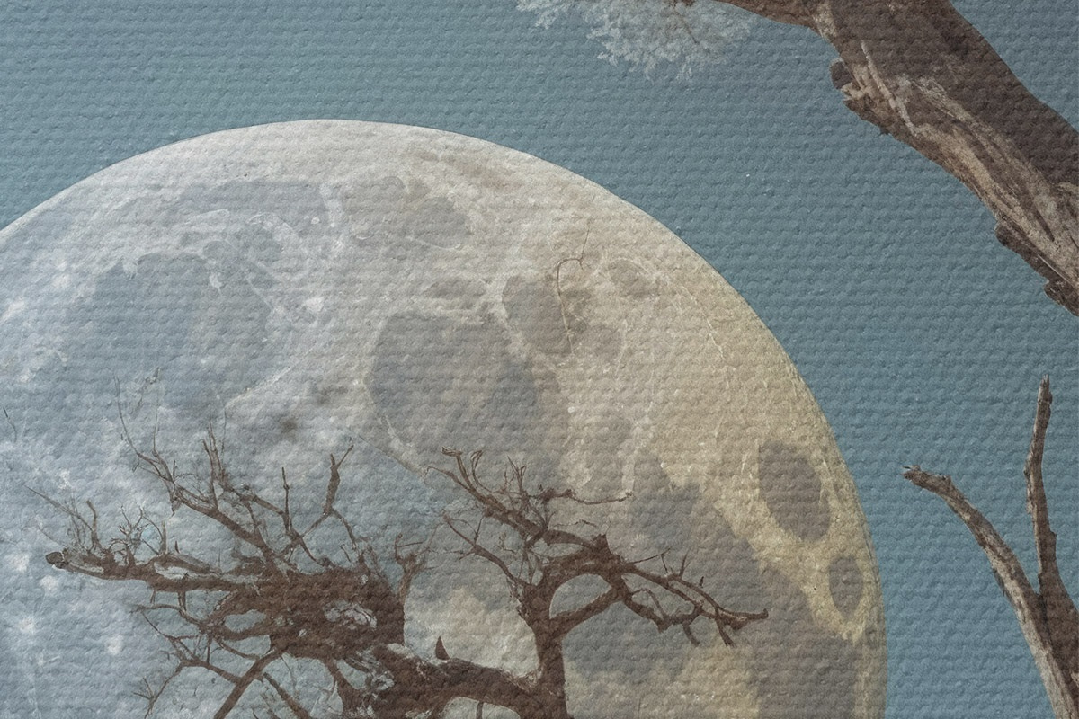 Okrągły obraz Drzewo rosnące na środku jeziora na tle księżyca Nr r44481