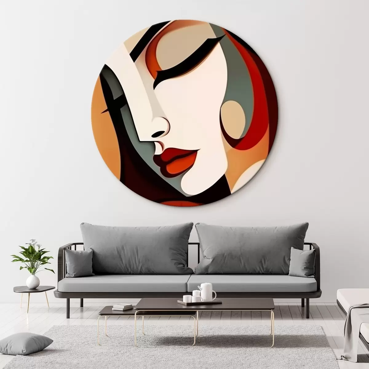Okrągłe obrazy Kobiecy profil w stylu kubizmu r44486
