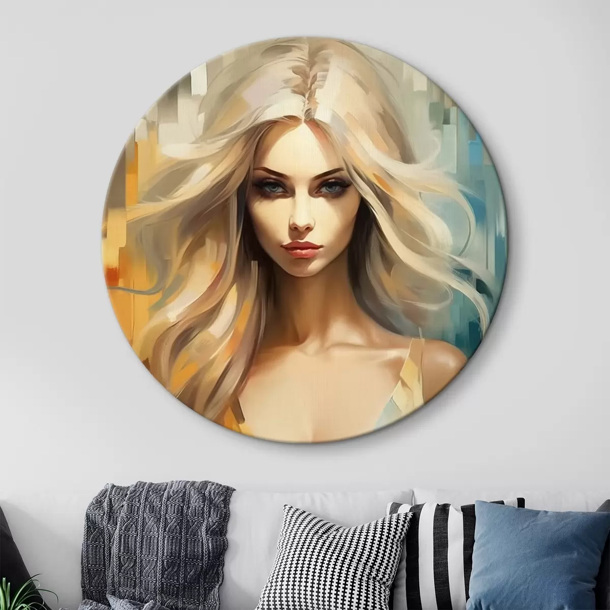 Okrągły obraz Dziewczyna na kolorowym tle Nr r44494