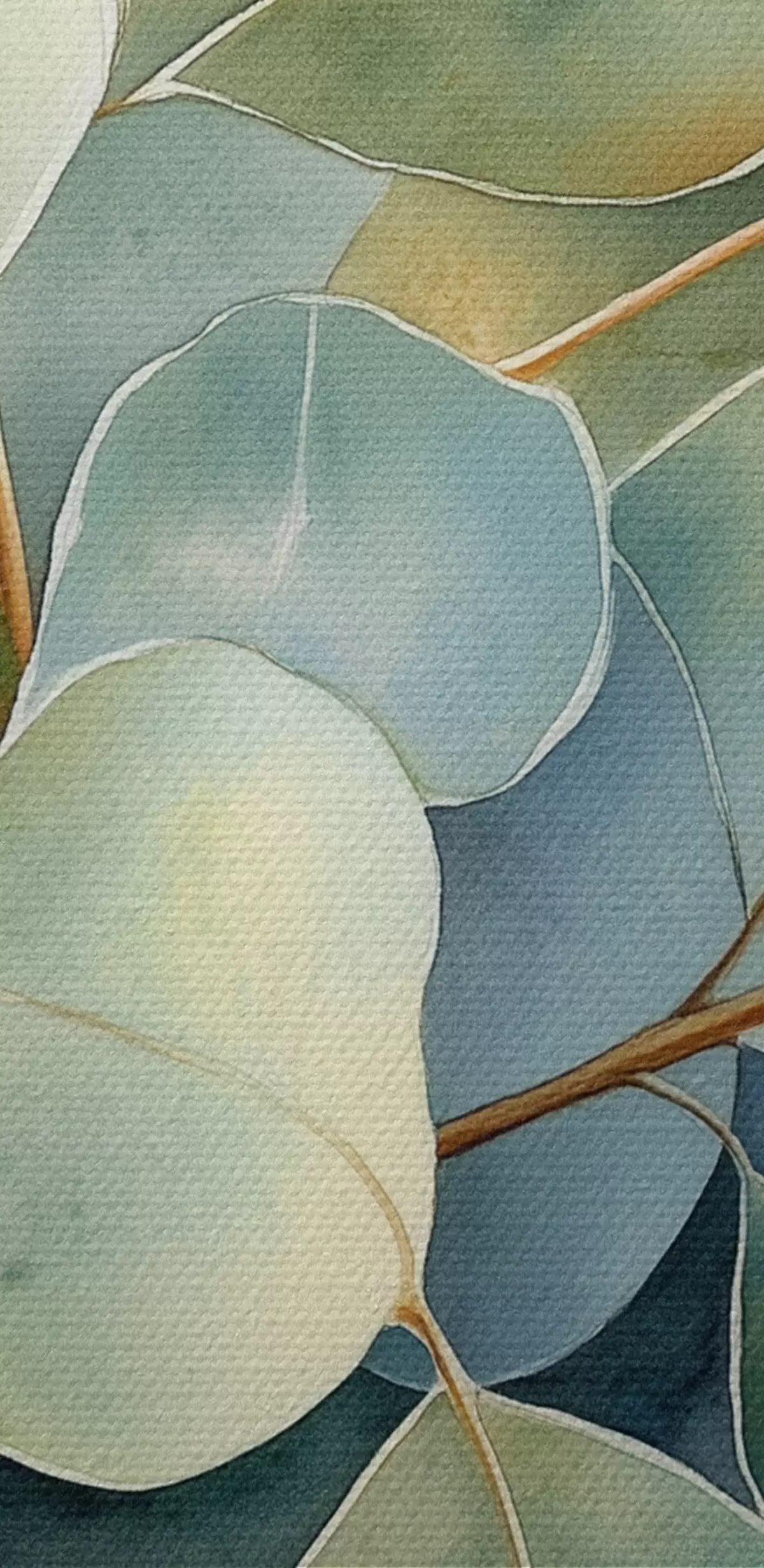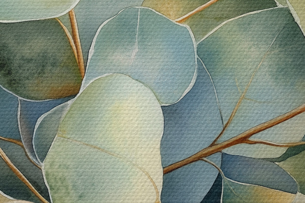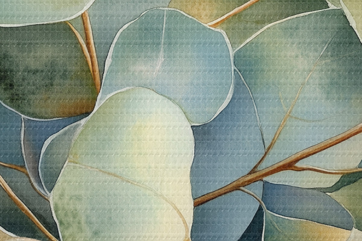Okrągły obraz Liście eukaliptusa, styl akwareli, natura Nr r44502