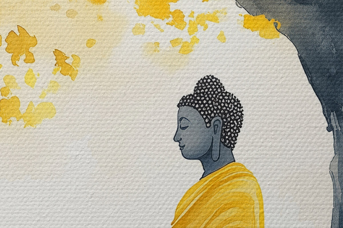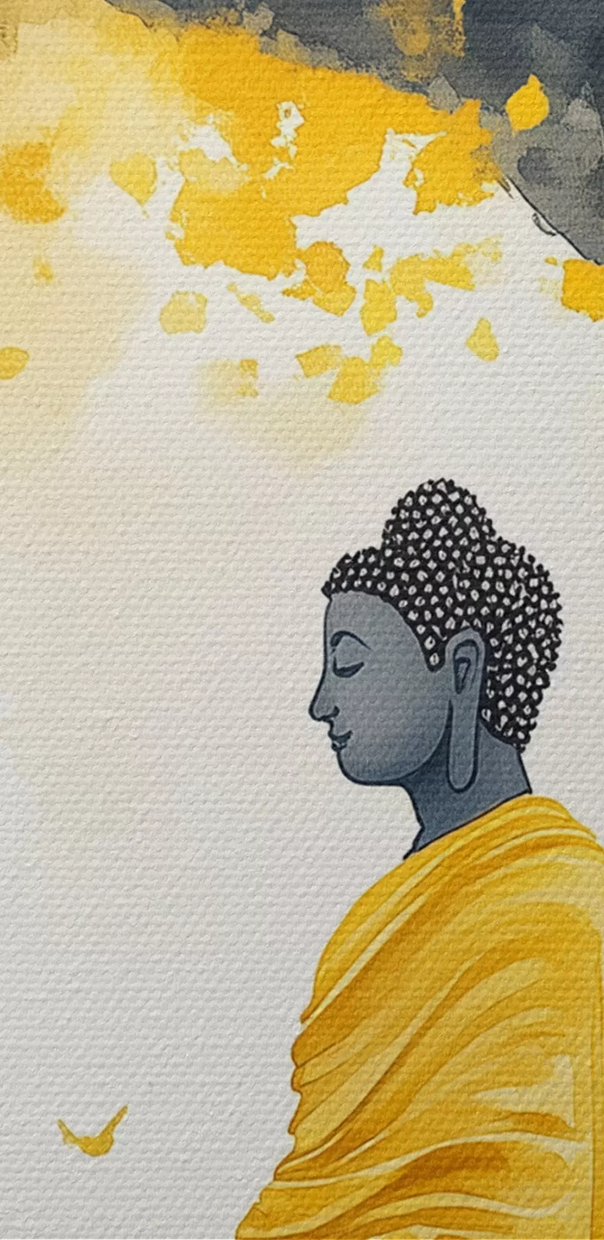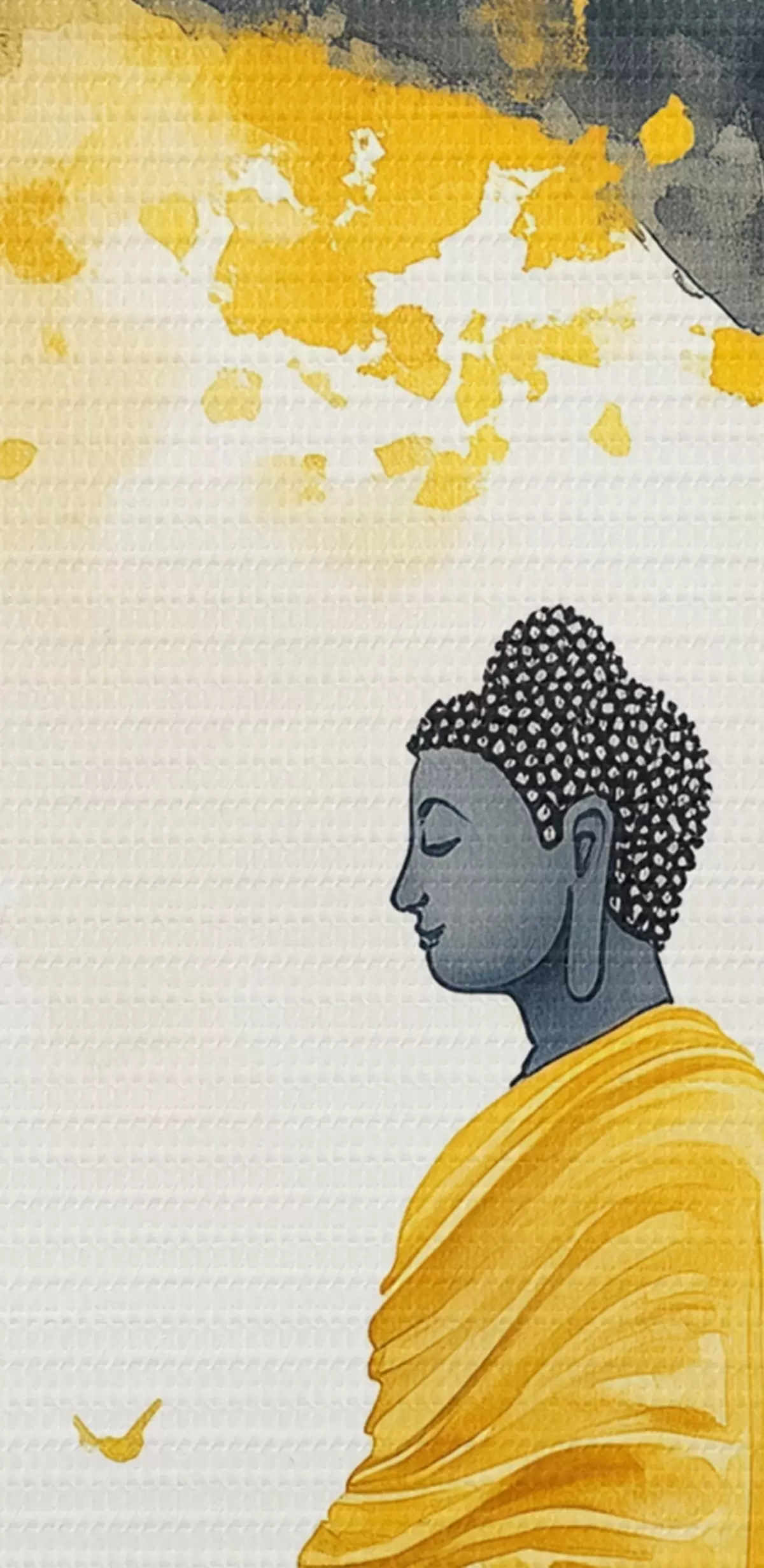 Okrągły obraz Medytujący Budda pod drzewem, kolory żółty i szary Nr r44509