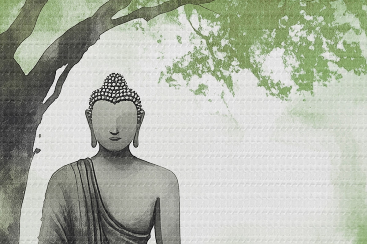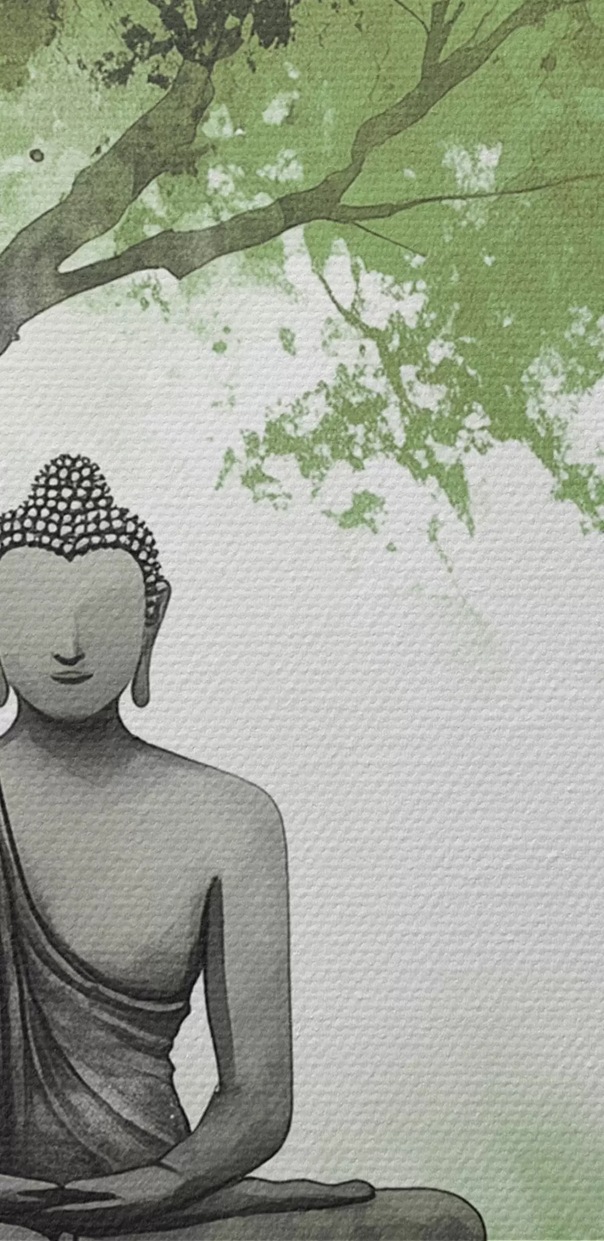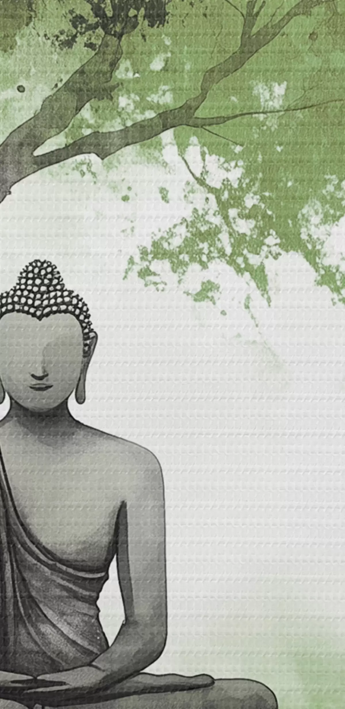 Okrągłe obrazy Budda siedzący pod drzewem, medytacja, duchowość, zielone kolory r44512v1