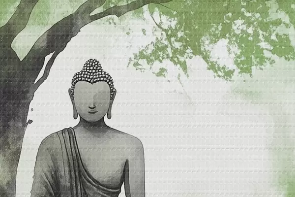 Okrągły obraz Budda siedzący pod drzewem, medytacja, duchowość, zielone kolory Nr r44512v1