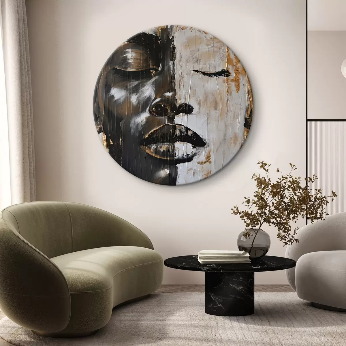 Okrągły obraz Abstrakcyjny portret imitujący malarstwo Nr r44514