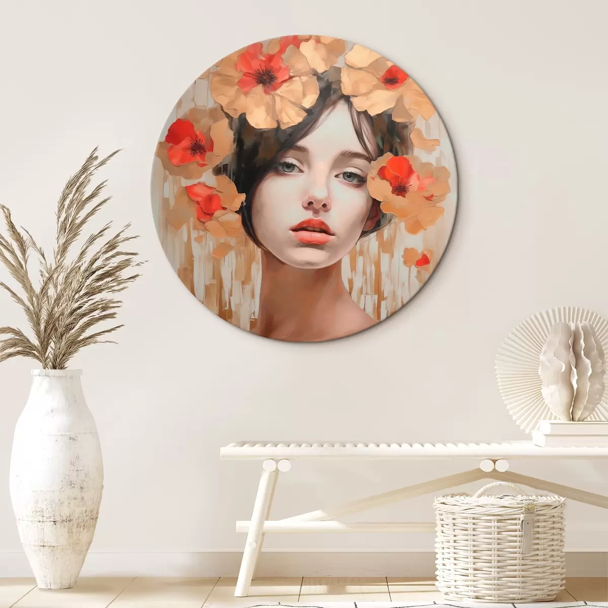 Okrągły obraz Portret dziewczynki z kwiatami Nr r44593