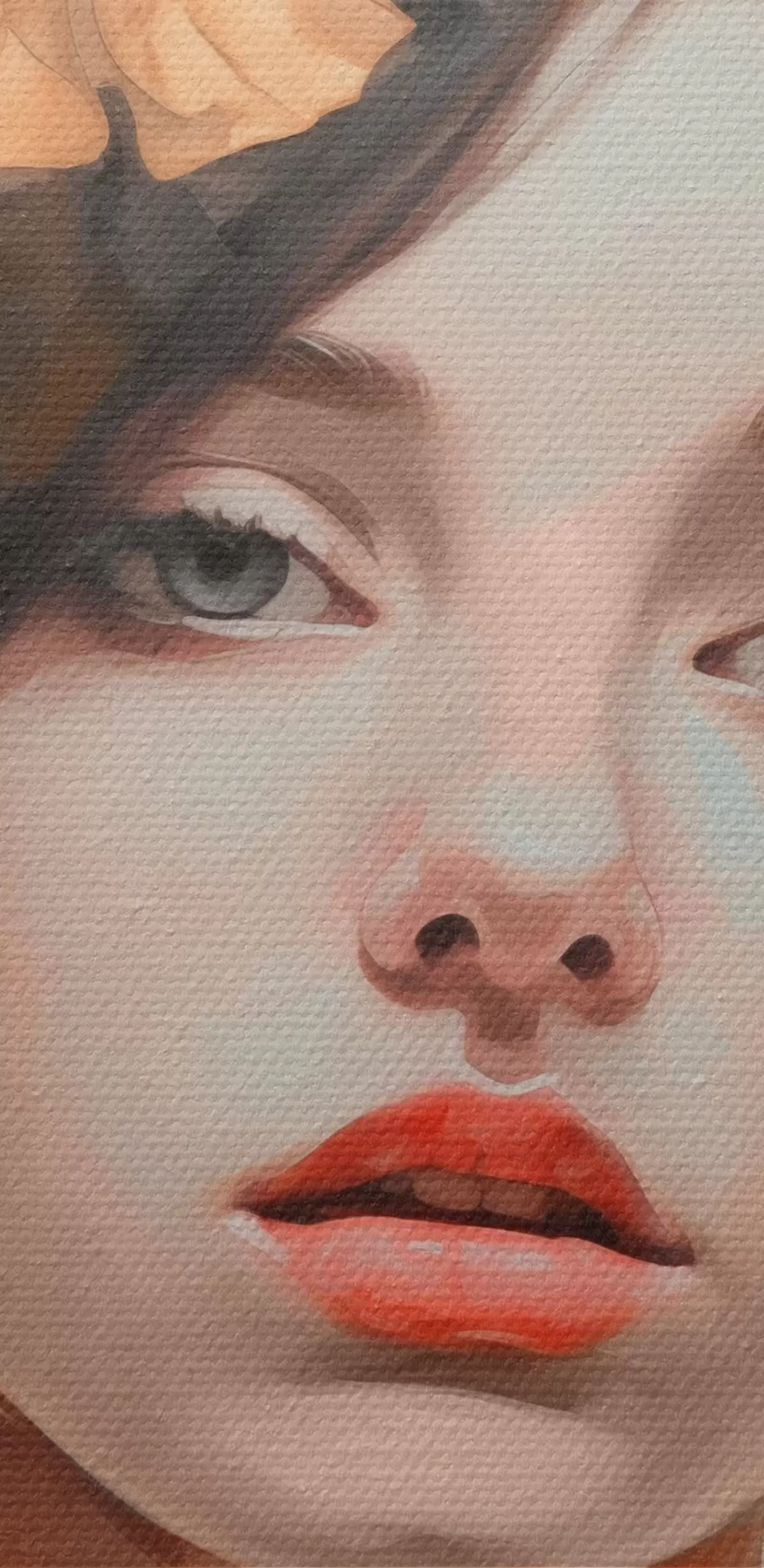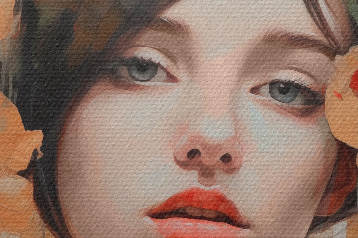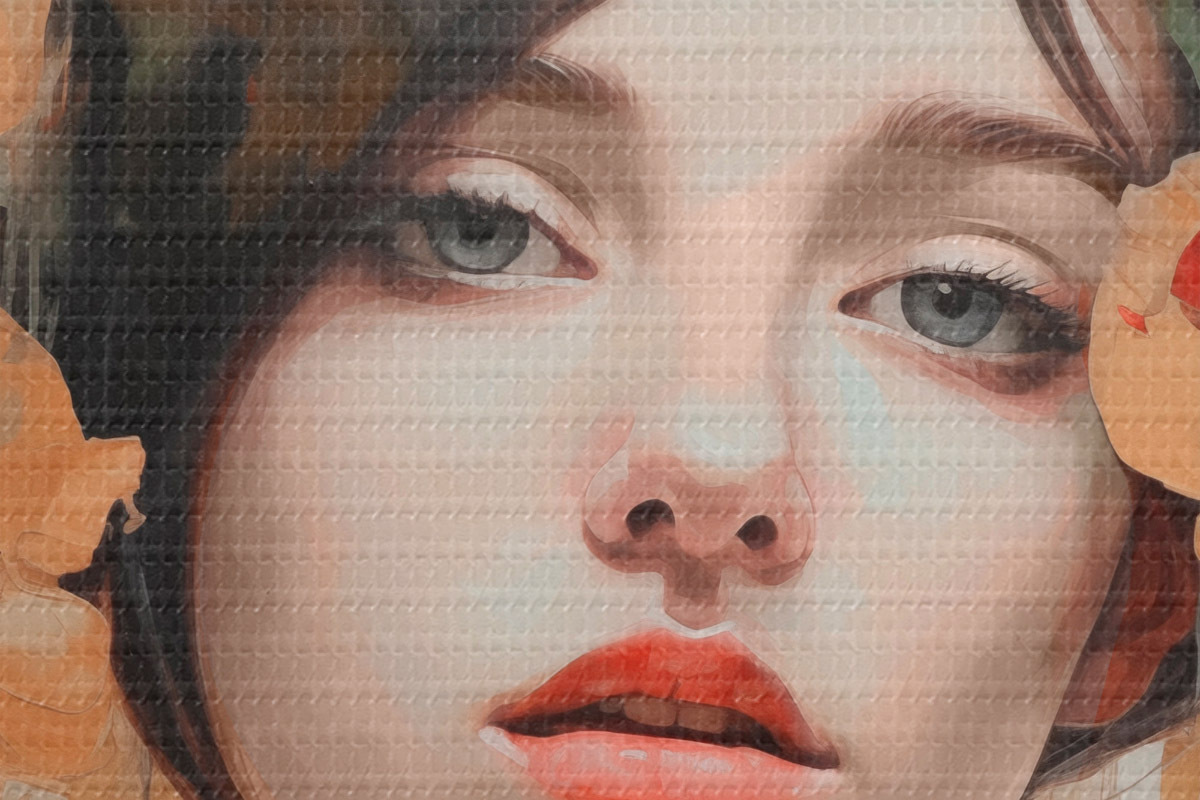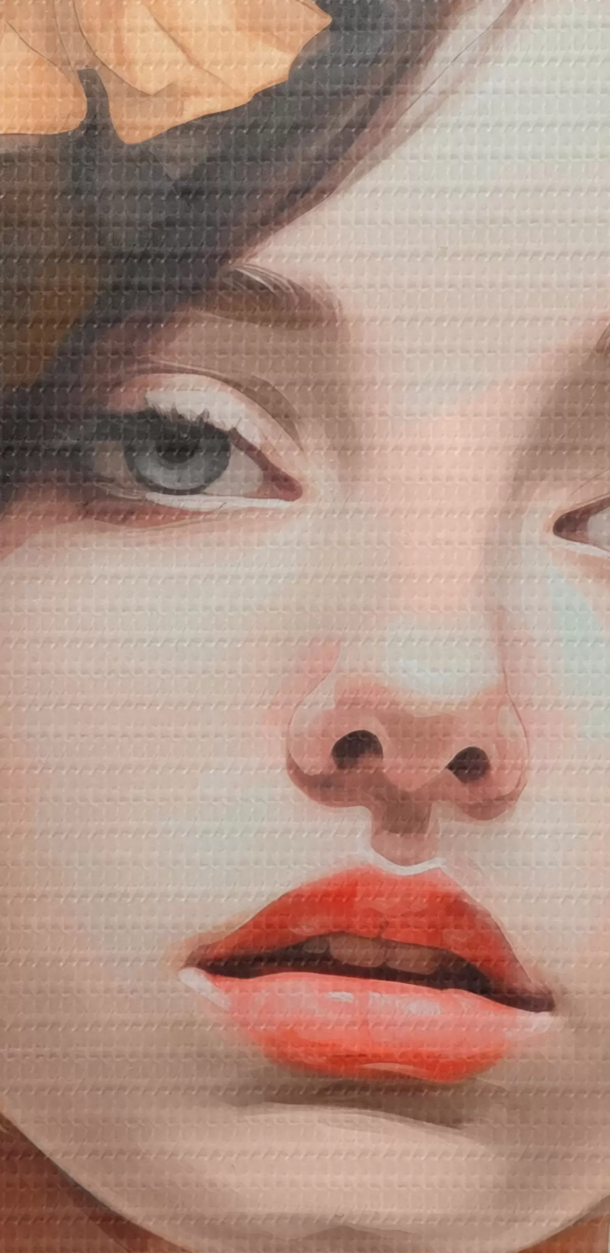Drobny splot nici na tym płótnie przypomina powierzchnię profesjonalnych płócien artystycznych.