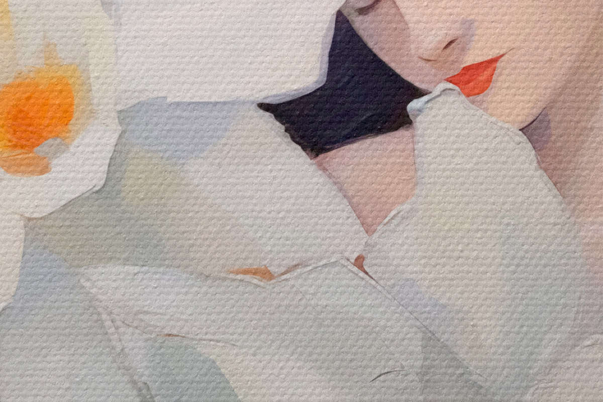 Drobny splot nici na tym płótnie przypomina powierzchnię profesjonalnych płócien artystycznych.