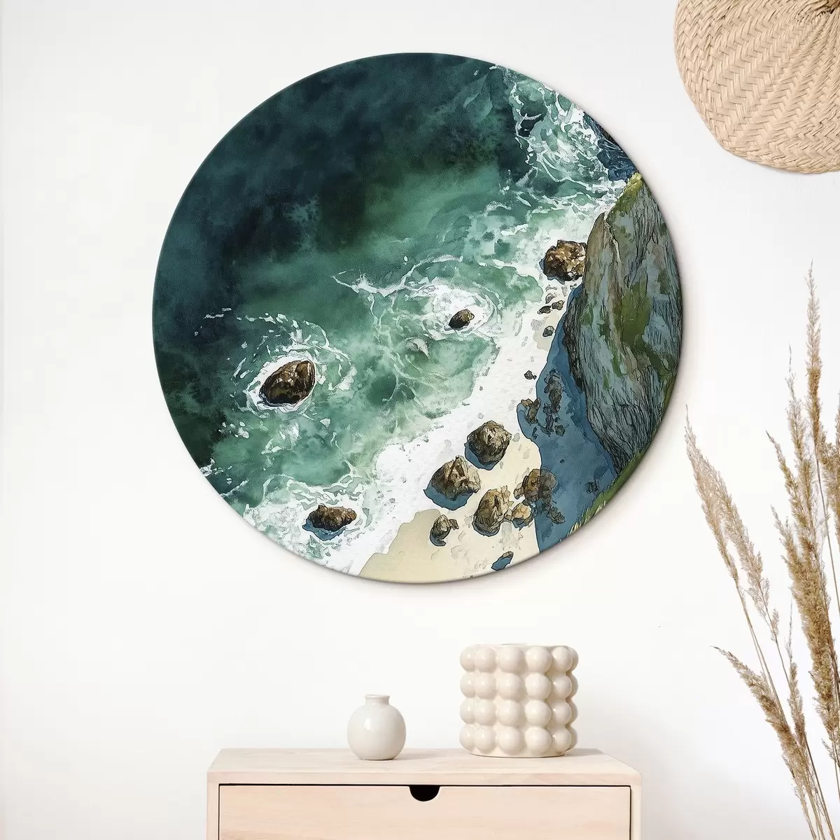 Okrągły obraz Akwamarynowa woda, ocean, skalne klify, Portugalia Nr r44617