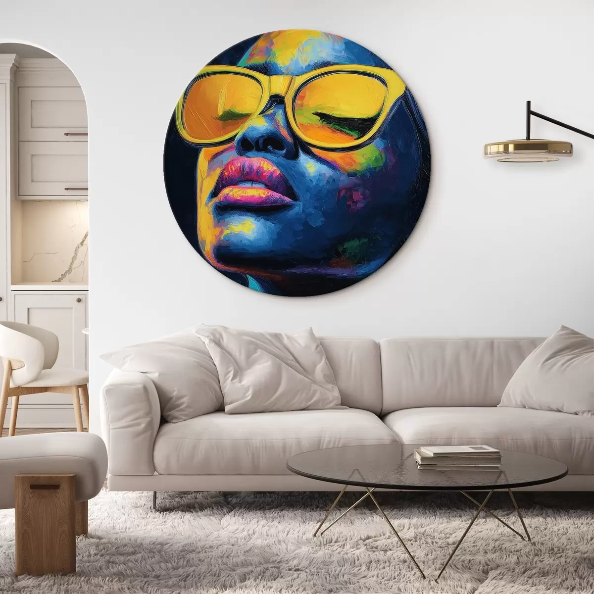 Okrągłe obrazy Dziewczyna w żółtych okularach r44621