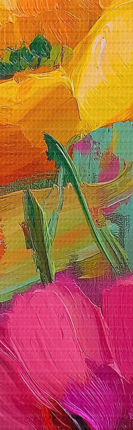 Drobny splot nici na tym płótnie przypomina powierzchnię profesjonalnych płócien artystycznych.