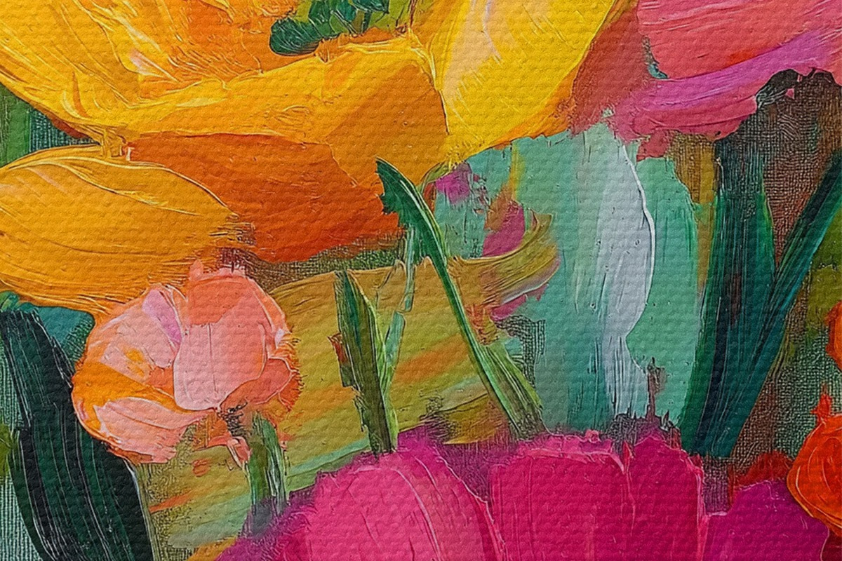 Drobny splot nici na tym płótnie przypomina powierzchnię profesjonalnych płócien artystycznych.