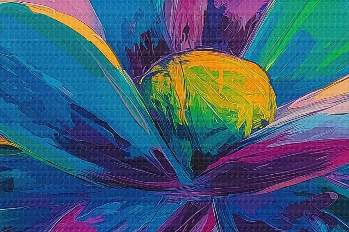 Drobny splot nici na tym płótnie przypomina powierzchnię profesjonalnych płócien artystycznych.