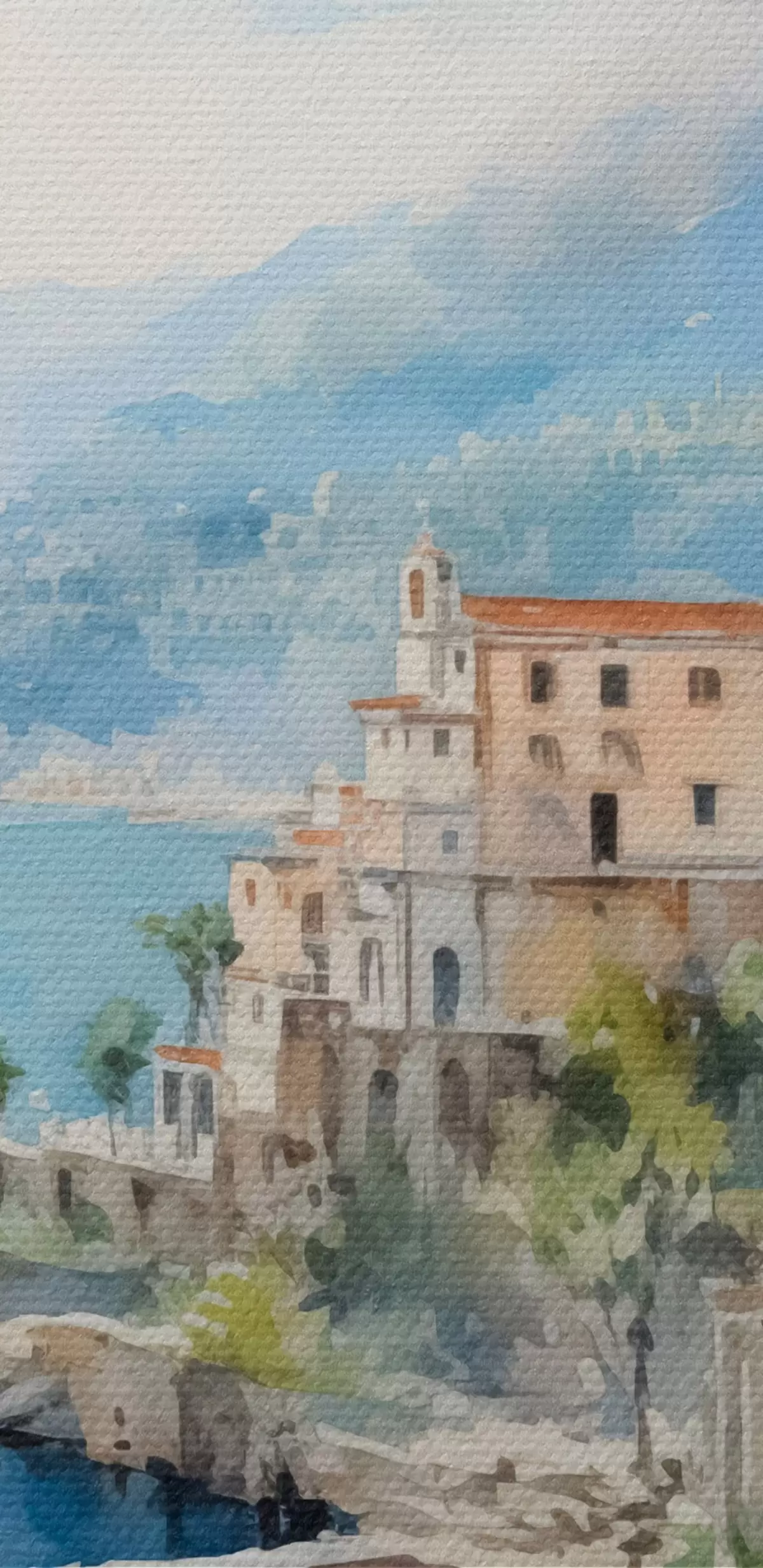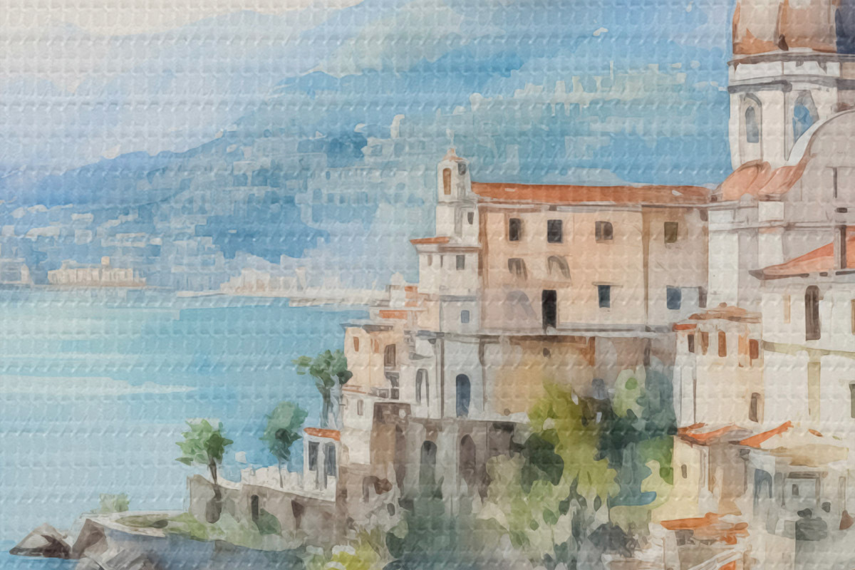 Okrągły obraz Miasto nad morzem imitacja akwareli Nr r44635