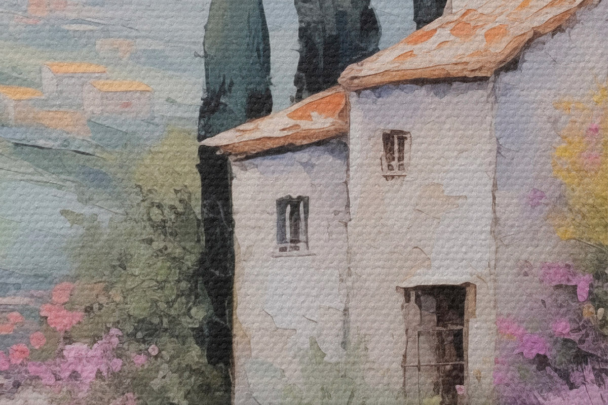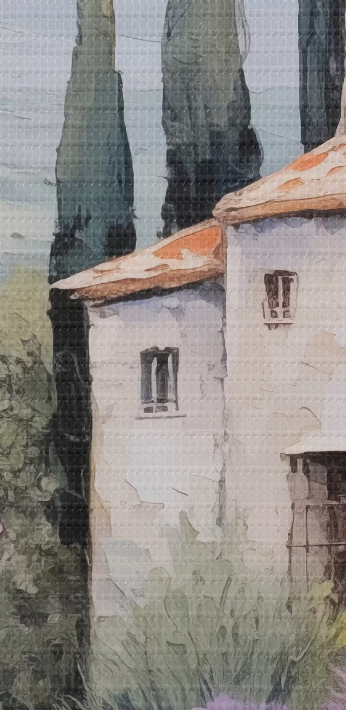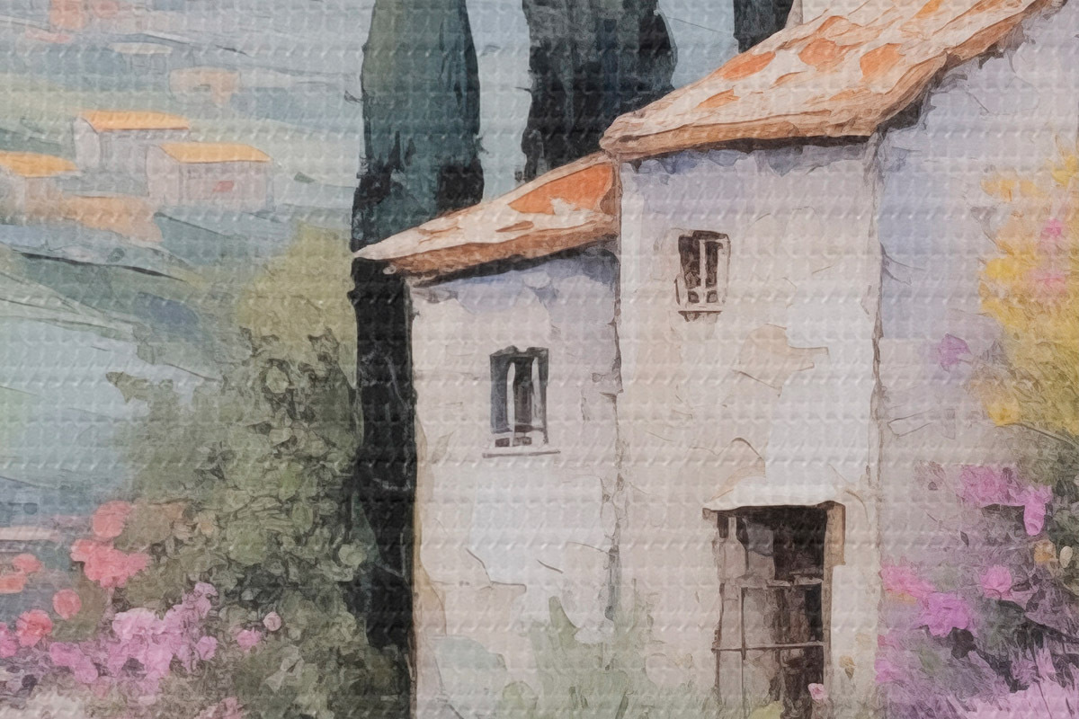 Drobny splot nici na tym płótnie przypomina powierzchnię profesjonalnych płócien artystycznych.
