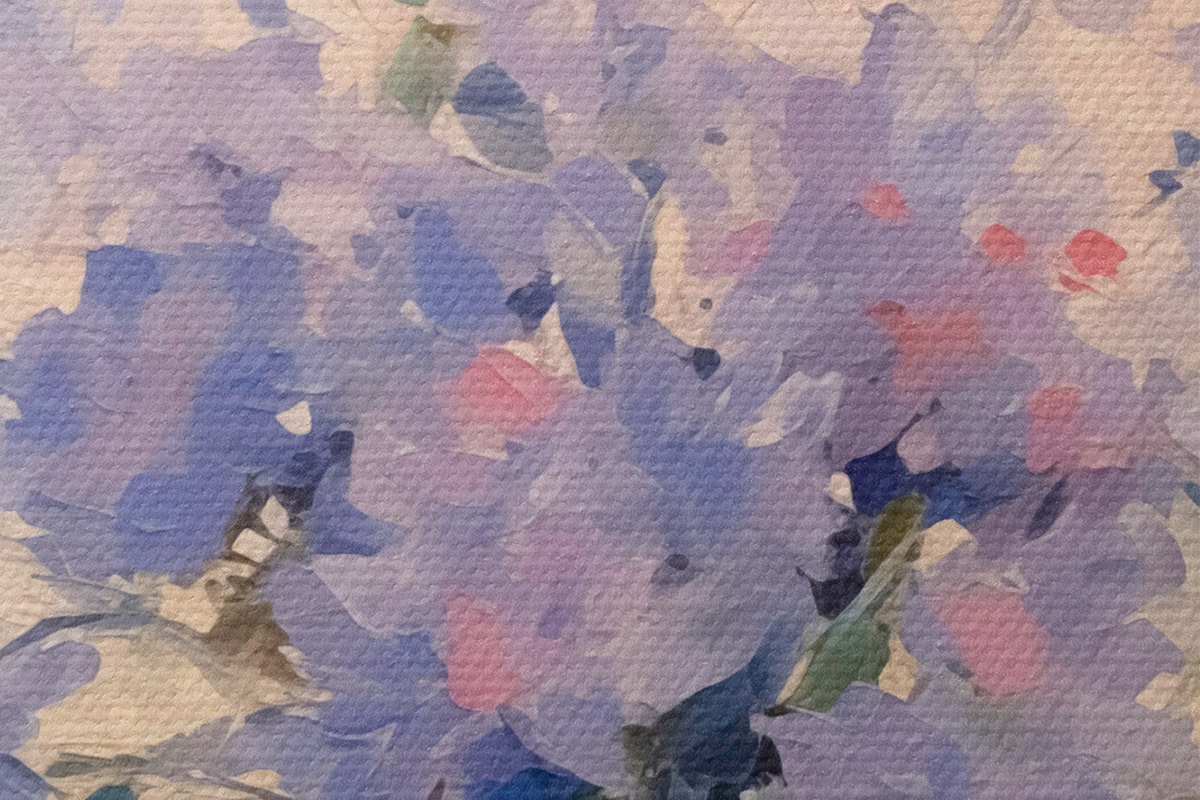 Drobny splot nici na tym płótnie przypomina powierzchnię profesjonalnych płócien artystycznych.