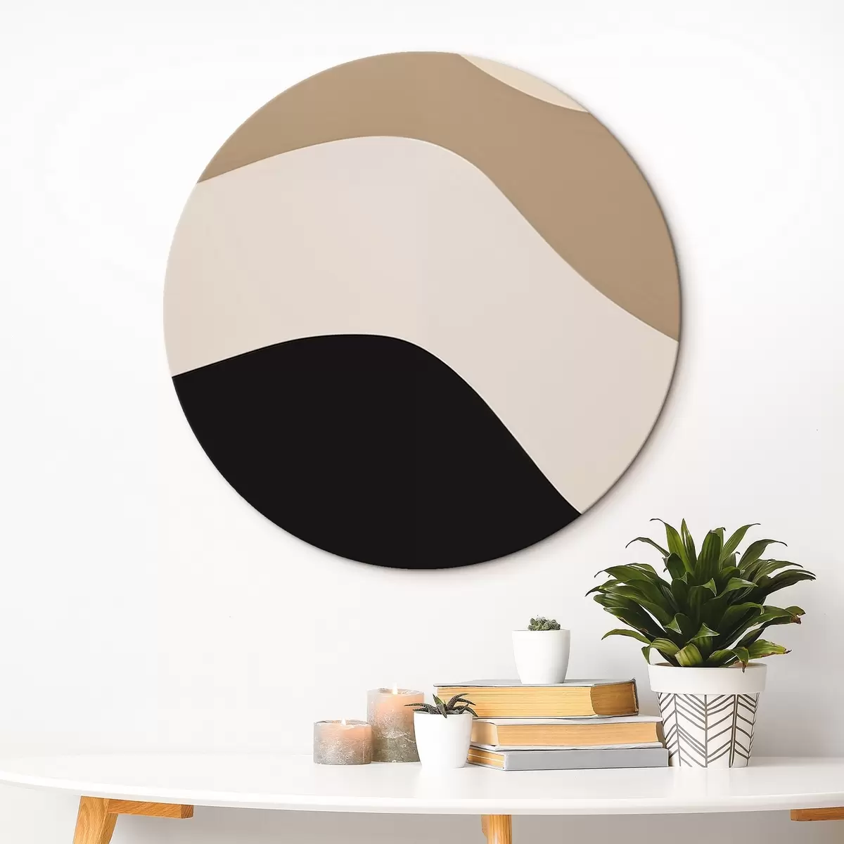 Okrągłe obrazy Abstrakcyjne fale w kolorze beżowym i czarnym r44687