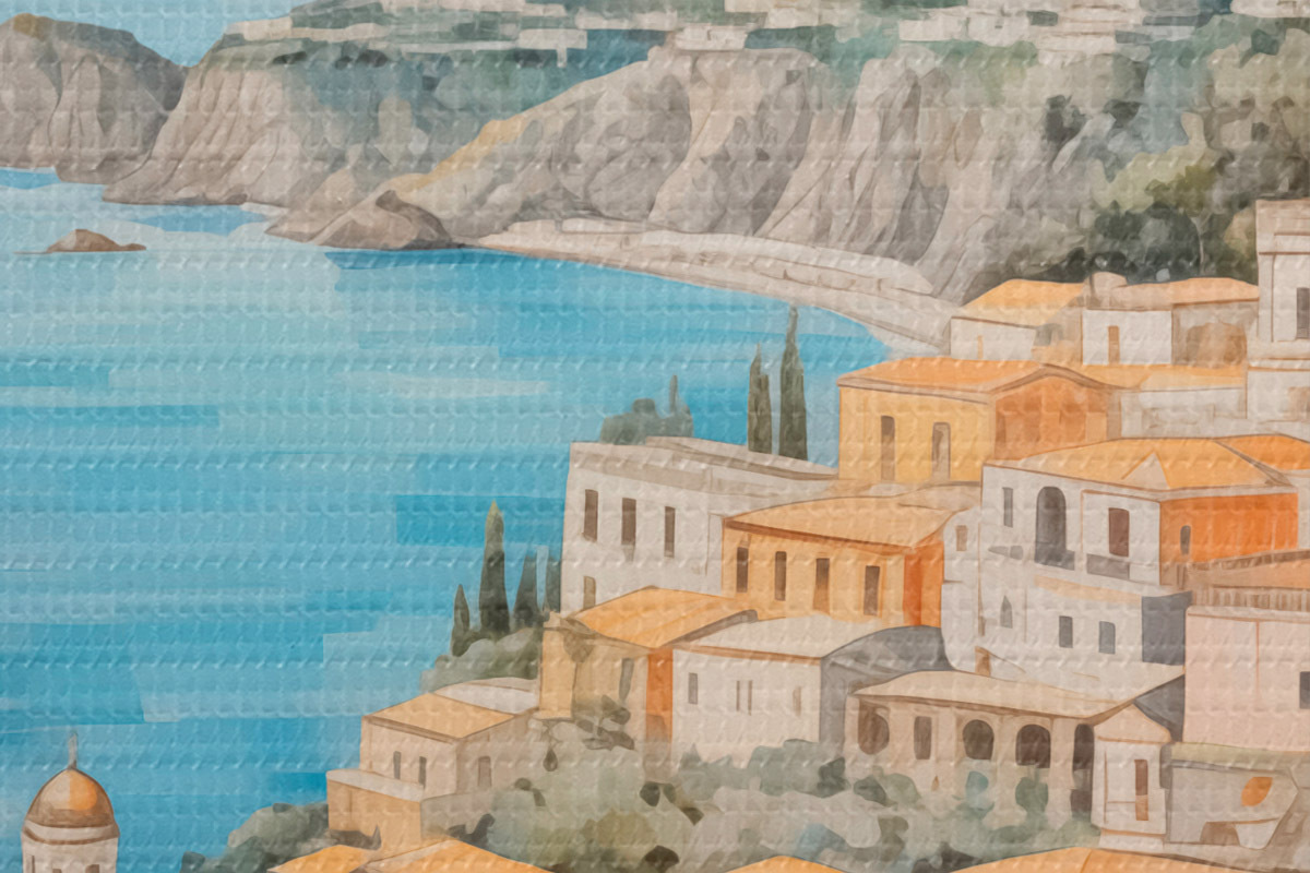Okrągły obraz Miasto nad morzem Nr r44694