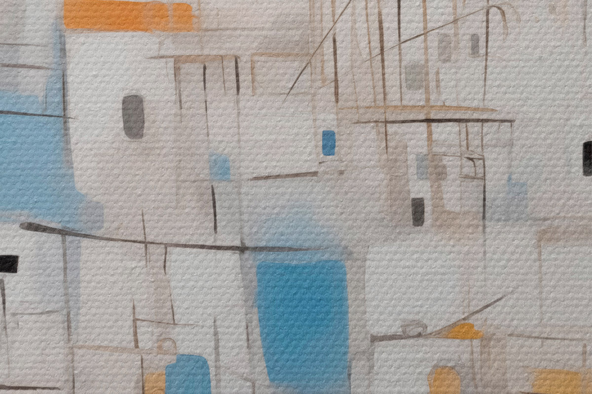 Drobny splot nici na tym płótnie przypomina powierzchnię profesjonalnych płócien artystycznych.