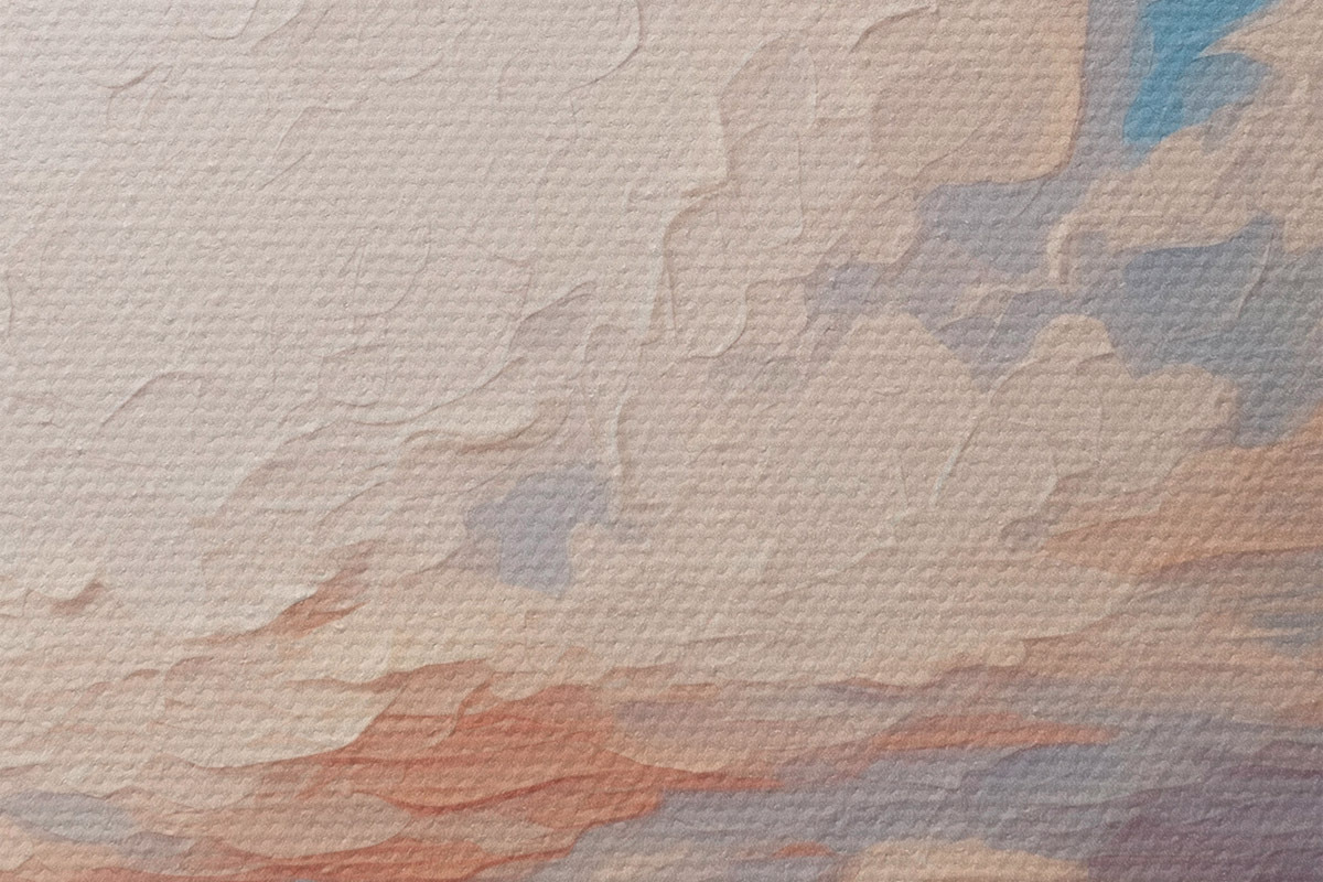 Drobny splot nici na tym płótnie przypomina powierzchnię profesjonalnych płócien artystycznych.