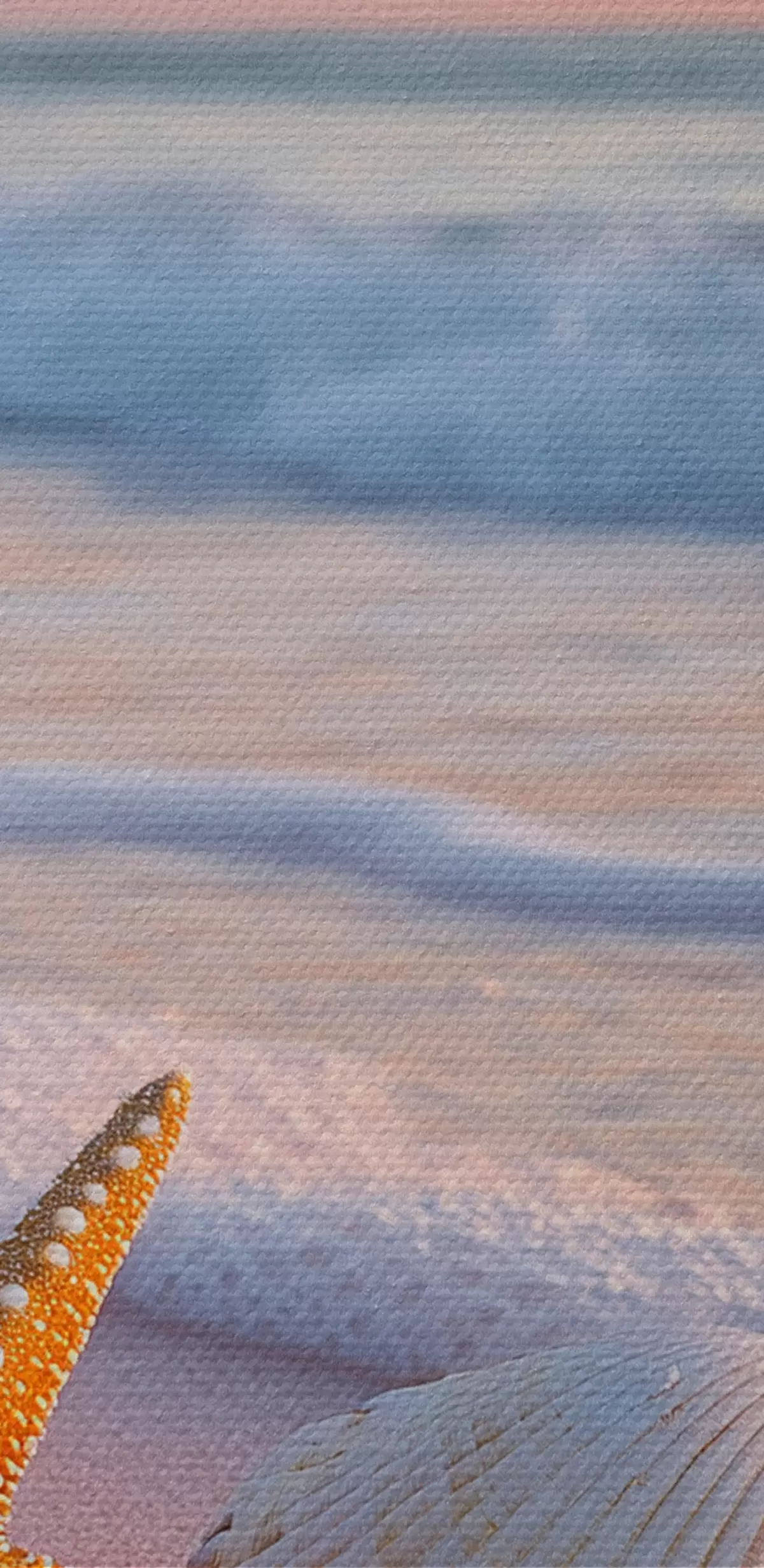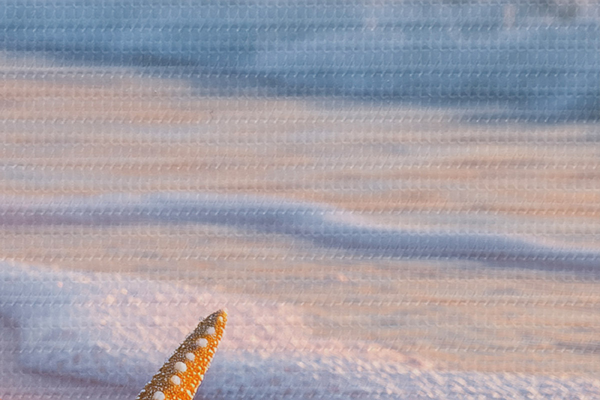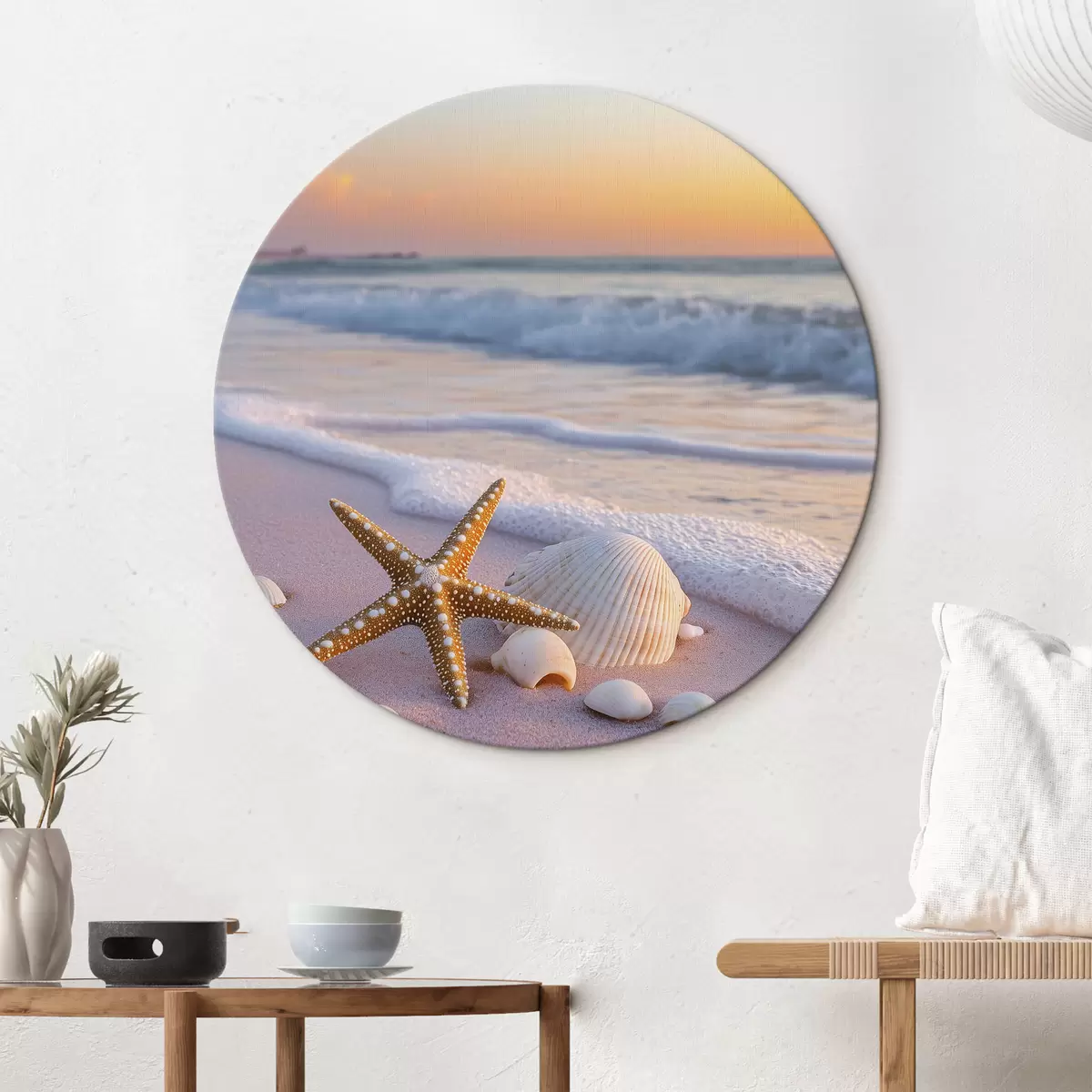 Okrągłe obrazy Wybrzeże morskie z rozgwiazdami, muszlami i falami r44714